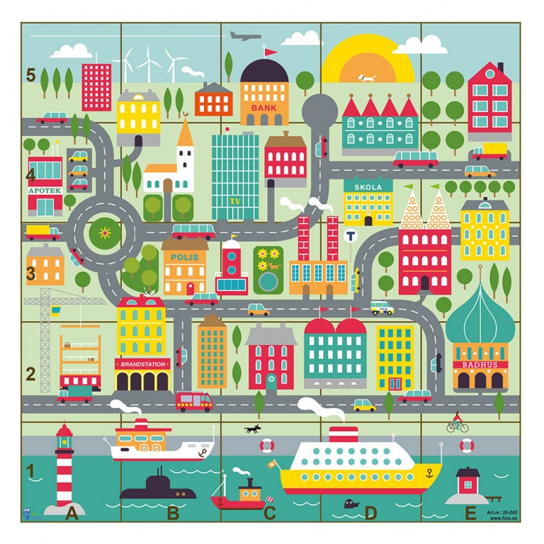 Spännande matta med svensk text för våra populära golvrobotar Bee-Bot och Blue-Bot. Här finns möjlighet att besöka polisen, brandstationen, hamnen, skolan och mycket mer. Gör programmeringen ännu roligare med berättelser och uppdrag som barnen eller eleverna får följa.