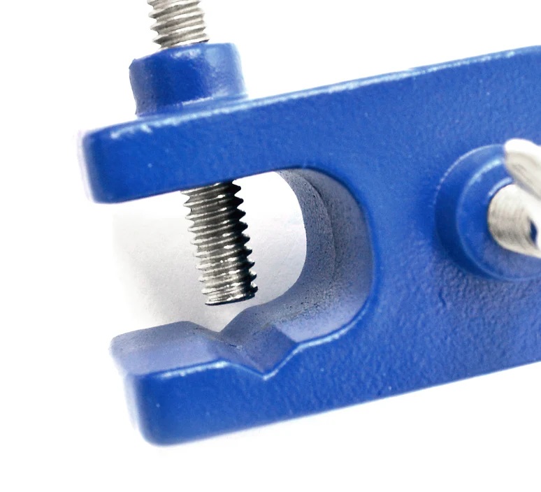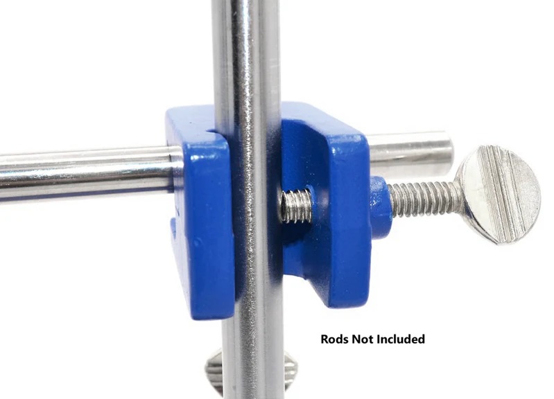 Konstruktion helt i metall för att klara tunga vikter och förhindra vridmomentskador. Två breda metallskruvar gör det lättare att säkert fästa den. Kan hålla stavar upp till 15 mm i diameter. Håller stavar ortogonala (90 grader) mot varandra.