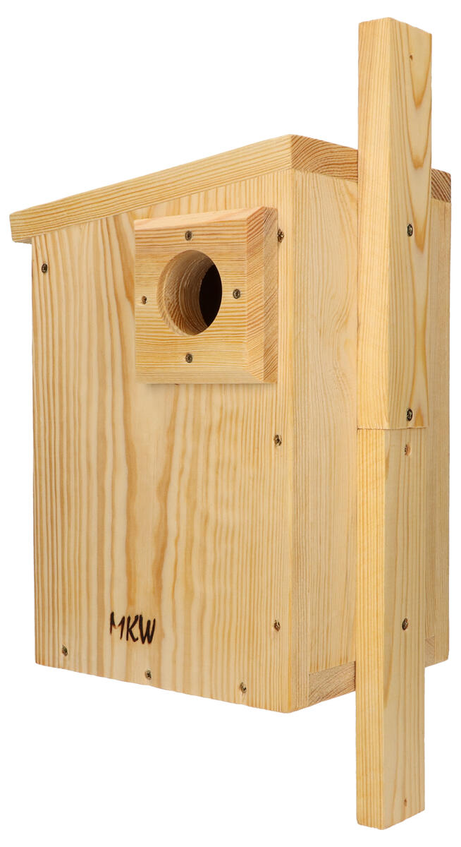 Ett hus för ekorrar som skyddar mot regn och vind och där de kan vila och sova. Tillverkad av slitstarkt, massivt FSC-certifierat trä som är behandlat med 2 lager luktfri linolja. Dräneringshål i botten hjälper till att släppa ut vatten ur huset. Frontpanelen är öppningsbar. Ingångshål på 5 cm och en extra platta som skyddar ingångshålet medföljer. Levereras färdigmonterat med rostfria skruvar.