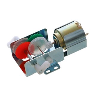 En växellåda med motor, växellådsram och två uppsättningar växlar som ger utväxlingar på 60:1 och 200:1.