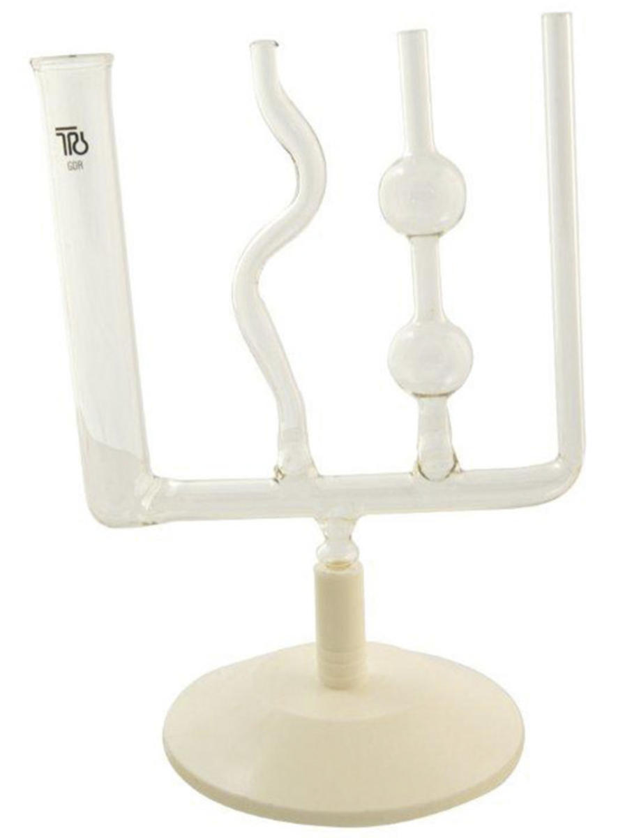 Kommunicerande kärl med 4st olika former och innermått som nedtill är förbundna med varandra.