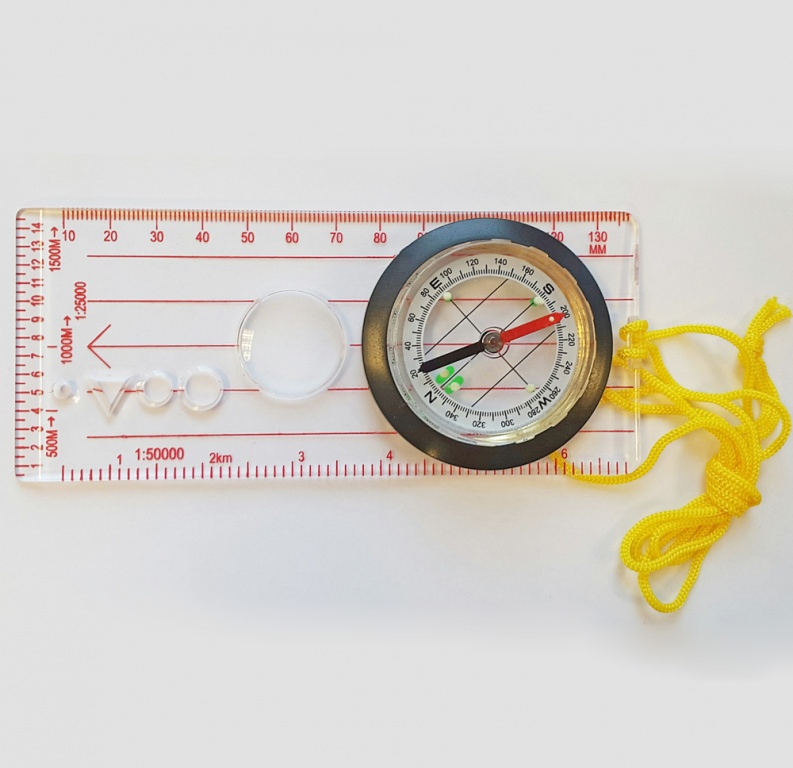 Klassisk orienterarkompass med oljefyllt kompasshus.