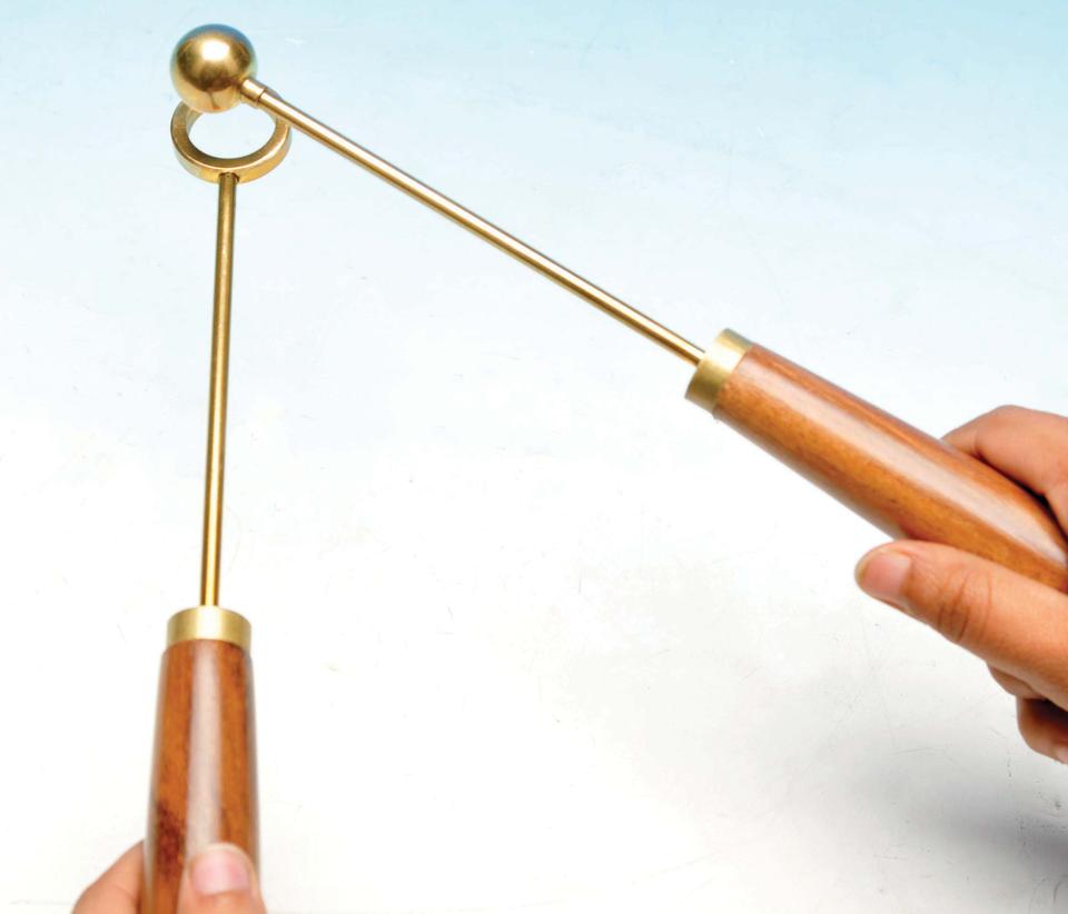 Består av en kula och ring i mässing. Var och en är individuellt monterad på en mässingstång med trähandtag.