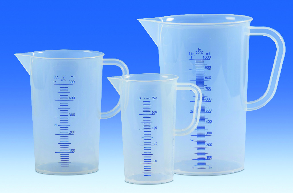 1 st mätbägare på 2000 ml i genomskinlig PP plast. Bägaren har en hög kemikalieresistens och tål upp till +121 grader C (under 20 minuter) och vid långvarig användning +100 grader C. Bägaren har handtag och en väldigt slät yta vilket underlättar vid rengöring. Den har blå graderingsskala i intervall 50 ml, pip och är godkänd för livsmedel. Höjd 215 mm, Diameter 150 mm.