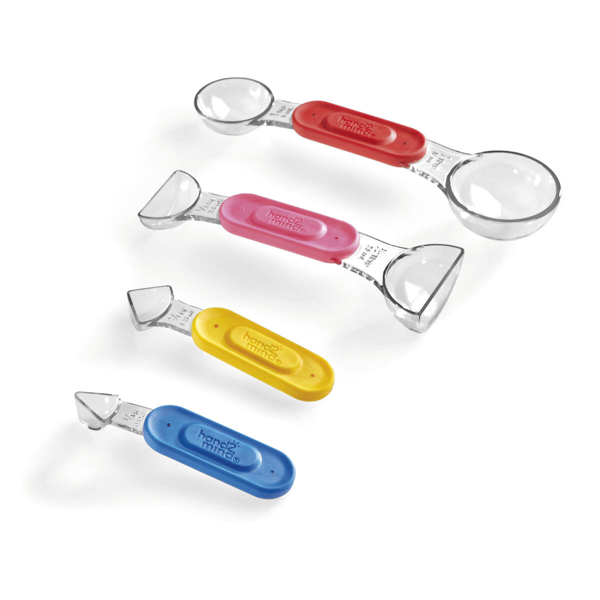 Färgglada skedar för praktiska aktiviteter. Stapelbara genom magnet i handtaget.