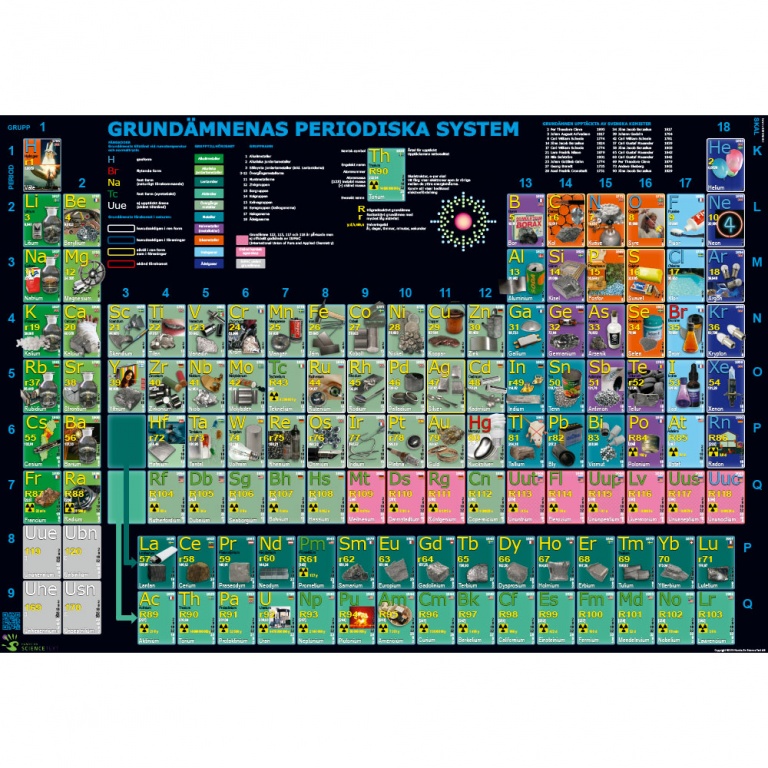 Svensk version med spännande bilder på varje ämne och exempel på produkter i vår omgivning som innehåller grundämnet.