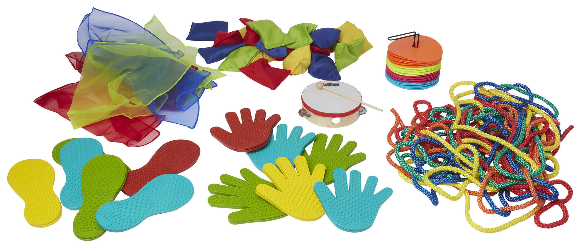 82 delar. Detta produktpaket har vi tagit fram tillsammans med föreningen Hållbar generation för att ge barn rörelseglädje och intresse för fysisk aktivitet. Här tränas de 12 grundmotoriska färdigheterna rulla, balansera, gå, springa, hoppa, kasta, fånga, stödja, klättra, hänga, krypa och åla.