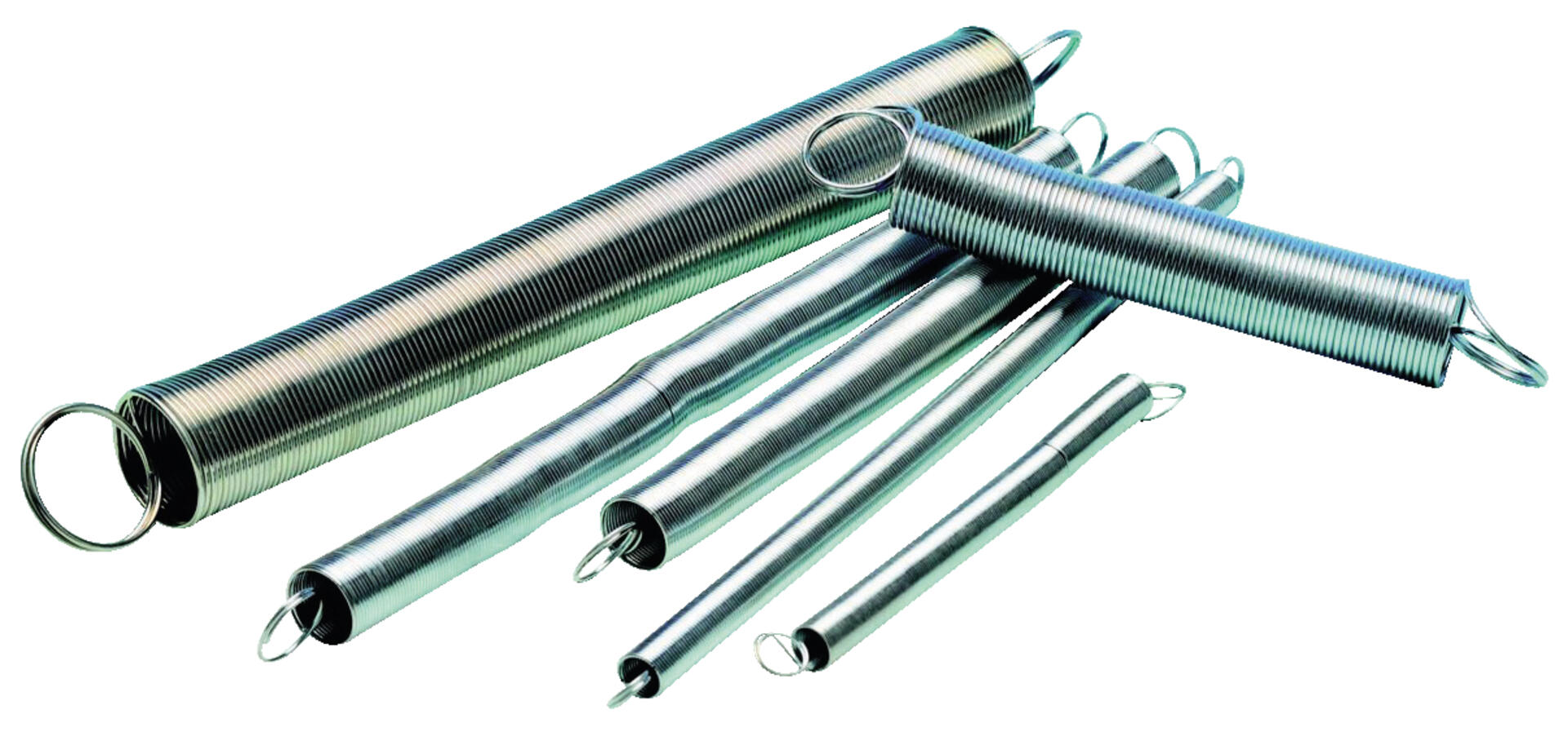 12 st fjädrar med krokar i bägge ändar. För försök i fysik inom kraft och vågrörelser. Diameter ca 1–3 cm, längd varierar 10–20 cm.