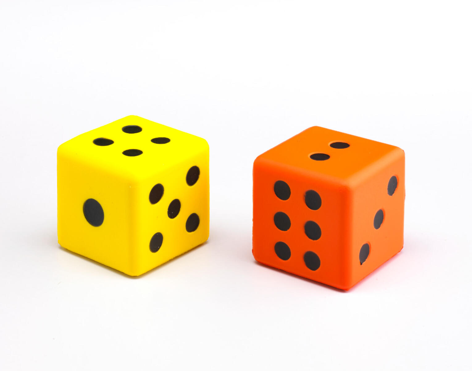 Taktila tärningar i skum av polyuretan. 2 st/fp. Tysta, taktila tärningar, utmärkta t. ex. för barn/elever med ljudkänslighet. Mått: 7,5×7,5×7,5 cm. Av PU-skum.
