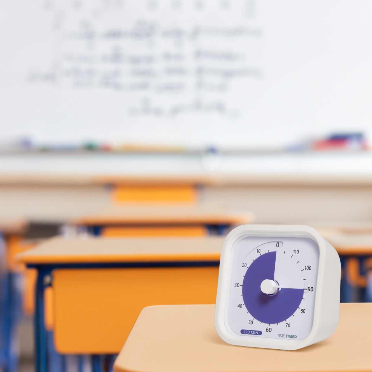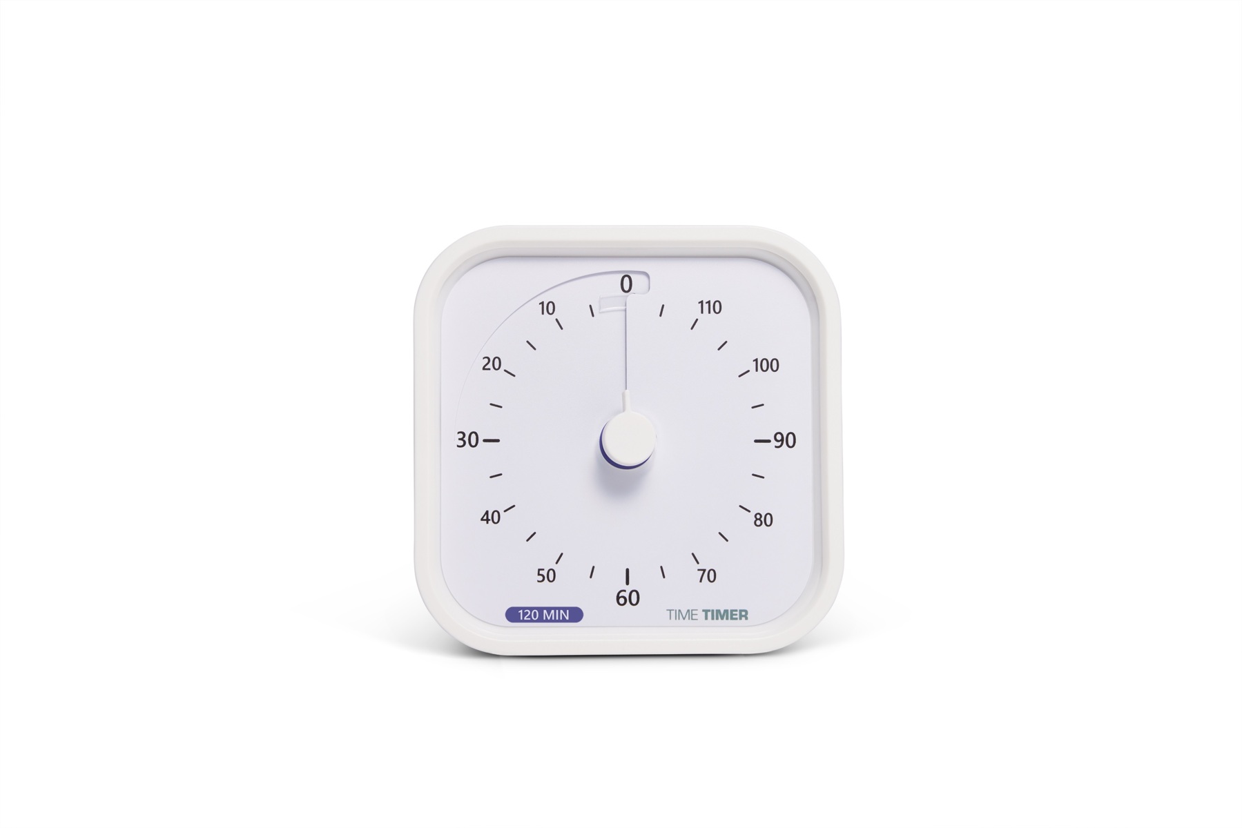 En klocka som tydligt visar hur lång tid man har på sig, eller hur lång tid det är kvar. Ställ in det lila fältet på önskad tid, t.ex. 60 min, och det minskar sedan i klockans riktning. Inställningsbar 0–120 min. Perfekt att använda i en mindre grupp, vid datorn, eller när man vill utföra olika uppgifter på viss tid. 1 st AA-batteri krävs, ingår ej. Ljudlös nedräkning. På/av-knapp för alarm på baksidan.