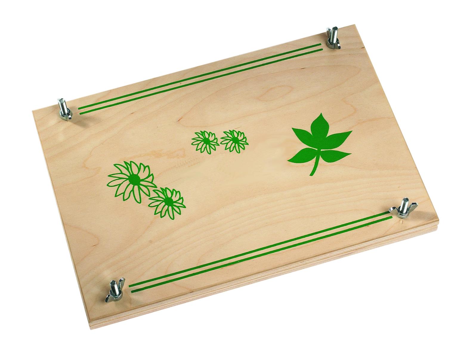 Växtpress av klassiskt snitt för att pressa blommor och andra växtdelar. Spännes med 4 greppvänliga muttrar.