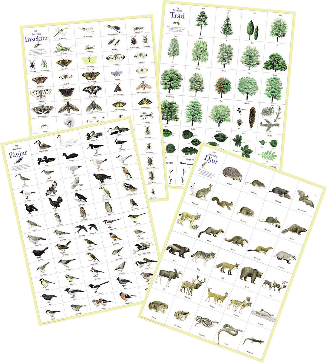 Affischer 4st: Svenska djur, Insekter, Fåglar o Träd