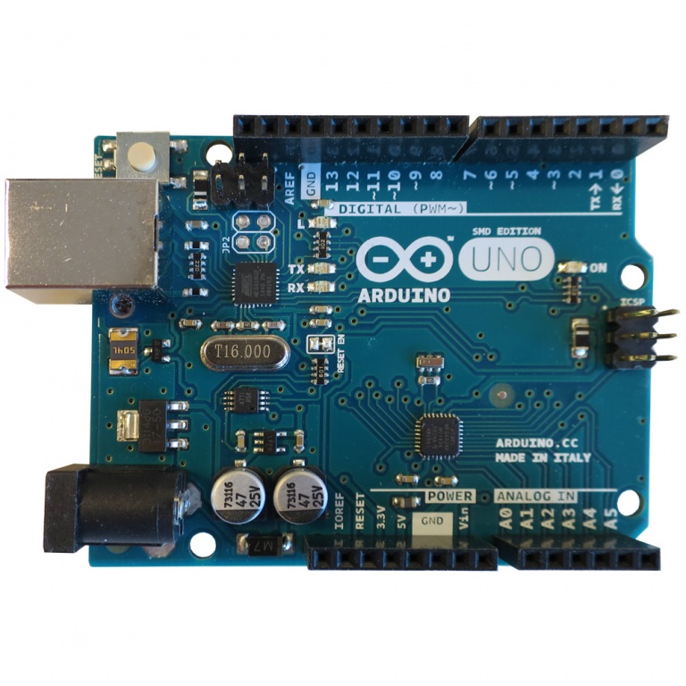 Utvecklingskort med öppen källkod och förinstallerad bootloader. 14 digitala in- och utgångar, varav 6 med PWM-stöd. 6 analoga ingångar med 10 bitars upplösning till exempel för mätning av temperatur.