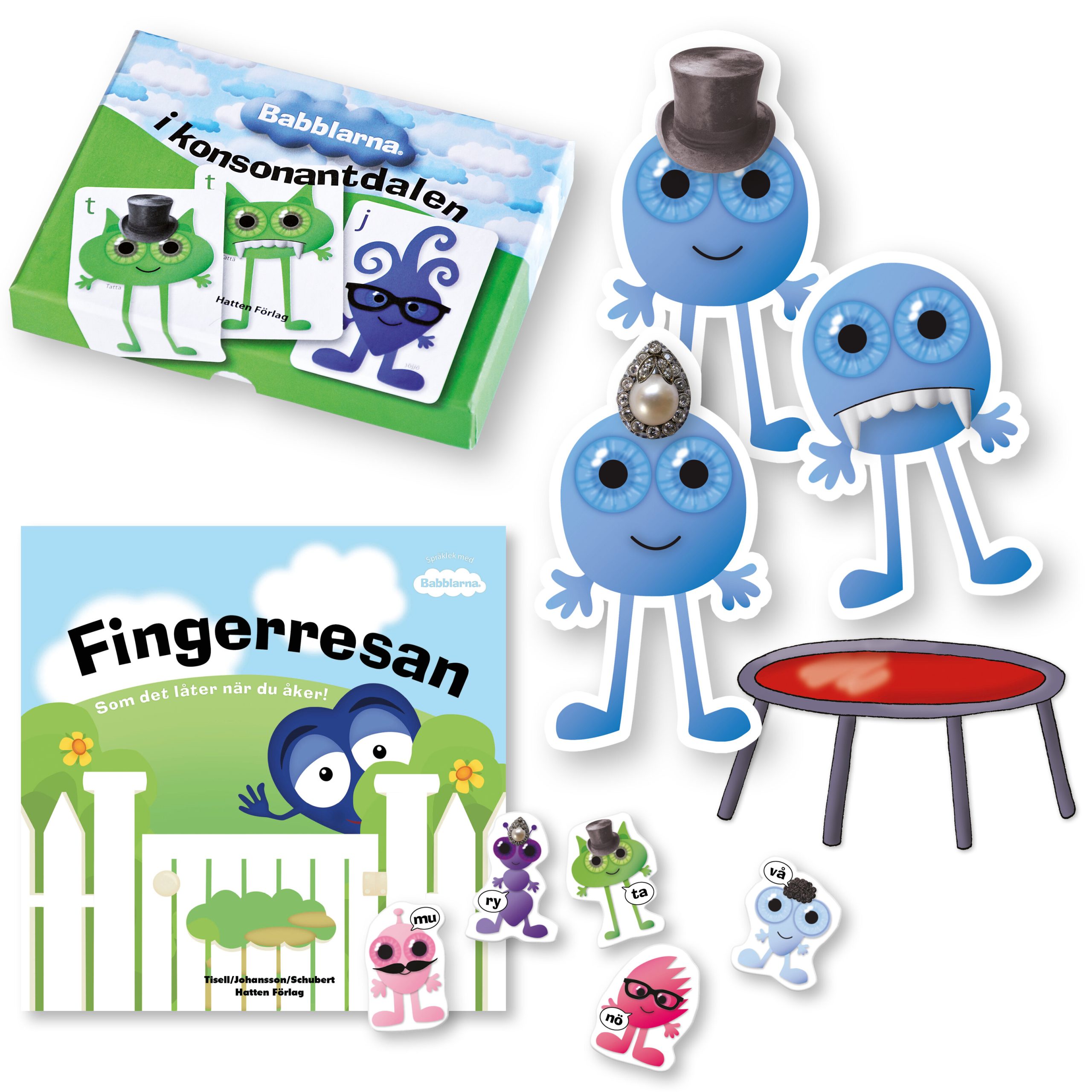 Paktet innehåller boken Fingerresan med Babblarna pappfigurer, Ordfigurer Babblarna konsonantfigurer och Kortspelet ”Babblarna i konsonantdalen”. Paketet levereras med en fin gympapåse som materialet kan förvaras i. Färgen på gympapåsen varierar och behöver inte stämma överens med bilden.