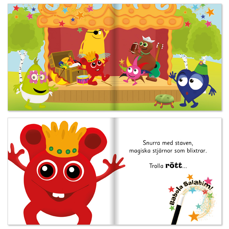 48 sidor. Kom så trollar vi med Babblarna! Vet du hur det går till när Babba blir Gagga och Dadda blir Sassa? Ja, helt rätt, det är något magiskt… Läs gärna boken med en riktig trollstav så blir det ännu roligare. (Längst bak i boken finns en sida att klippa ut, rulla ihop och limma eller tejpa så har du trollstaven du behöver). Babola Salabim! Nu börjar magin… En efterlängtad bok där Babba, Bibbi, Bobbo, Dadda, Diddi och Doddo är med, men trollas till figurerna Gagga, Giggi, Goggo, Sassa, Sissi och Sosso. Texten i boken är baserad på låten "Babola Salabim" som är med på Babblarnas första album. Boken blev 2017 utvald som Outstanding book av IBBY, International Board on Books for Young people. Mått: 20×20 cm. Av FSC-märkt papper.