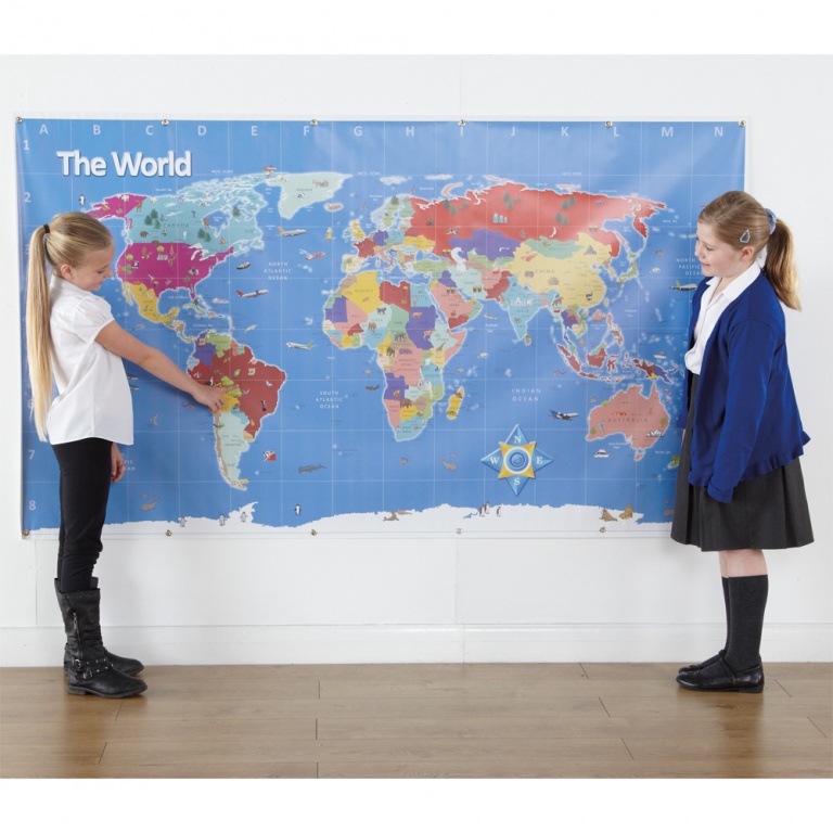 Förbättra barns kunskap om världen genom att kombinera kartläsning, riktat lärande, samordna geometri och mycket mer. Kartan är tryckt på stark vinyl med öljetter, så när den inte används med Bee-Bot eller Blue-Bot fungerar den som en fantastisk väggdisplay. Detaljer och färger gör denna karta visuellt imponerande och dess storlek (120×210 cm) gör att många får plats runt om och kan engagera sig.