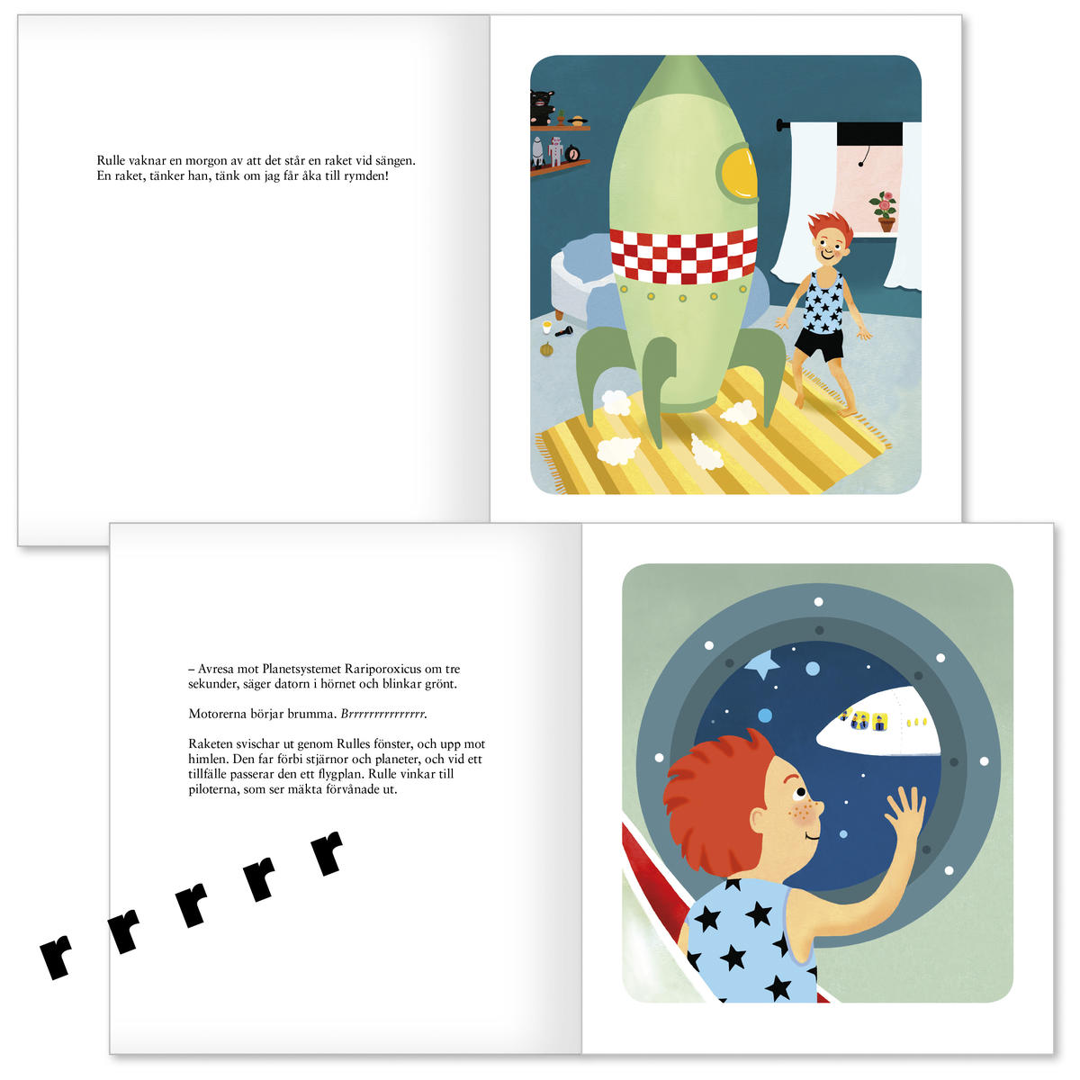 Boken Rulle och raketen kan användas för att stimulera utvecklingen av r-ljudet. En kort handledning finns i boken.