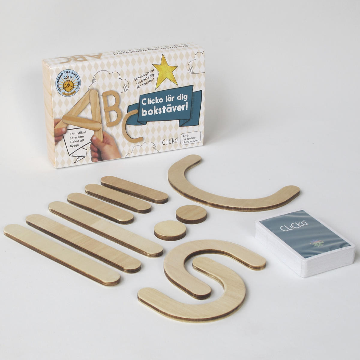 Ett pedagogiskt spel som lär ut bokstäver på ett enkelt, lekfullt och kreativt sätt genom att kombinera barnens byggintresse med fascination för magneter. Vänd, vrid och foga ihop de magnetiska byggdelarna i trä till bokstäver eller ord. Perfekt för små händer som ännu inte lärt sig att hålla i en penna. En kortlek med bokstavskort samt monster och stjärnor medföljer så att ni kan spela bokstavsspelet. Dra ett kort och bygg bokstaven på kortet med hjälp av trädelarna. För varje bokstav får du en stjärna, men akta dig för monstren som älskar stjärnor… Först till 5 stjärnor vinner. Du kan bygga alla bokstäver i alfabetet. Innehåll: 12 delar + kortlek. Mått: 18 respektive 10 cm höga delar. FSC-certifierad plywood. Från 3 år.