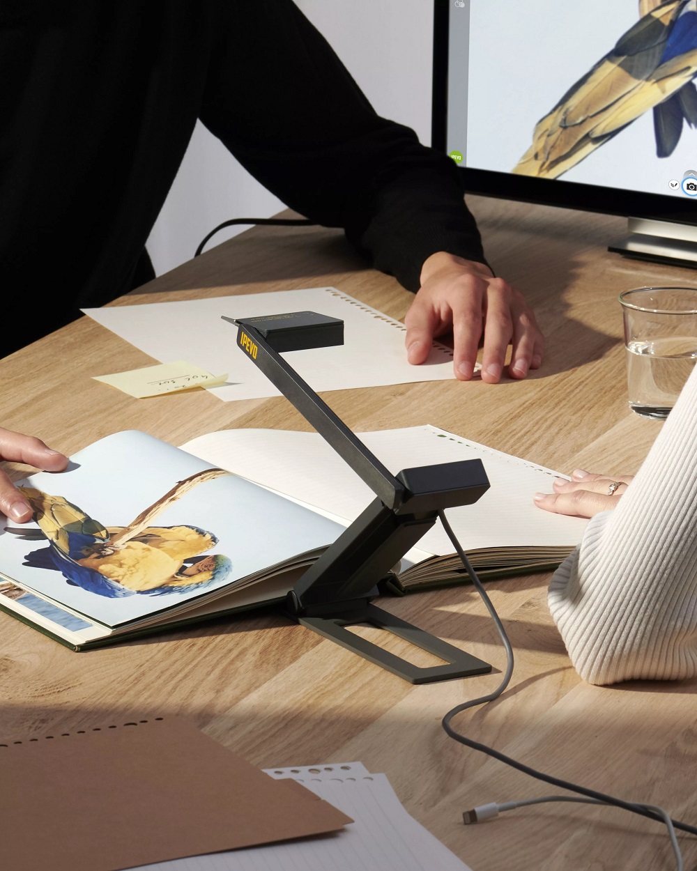 Eftersom den tar väldigt lite skrivbordsyta ger det dig möjlighet att använda ytan till att ha flera eller större föremål eller dokument framme på en gång för presentation.