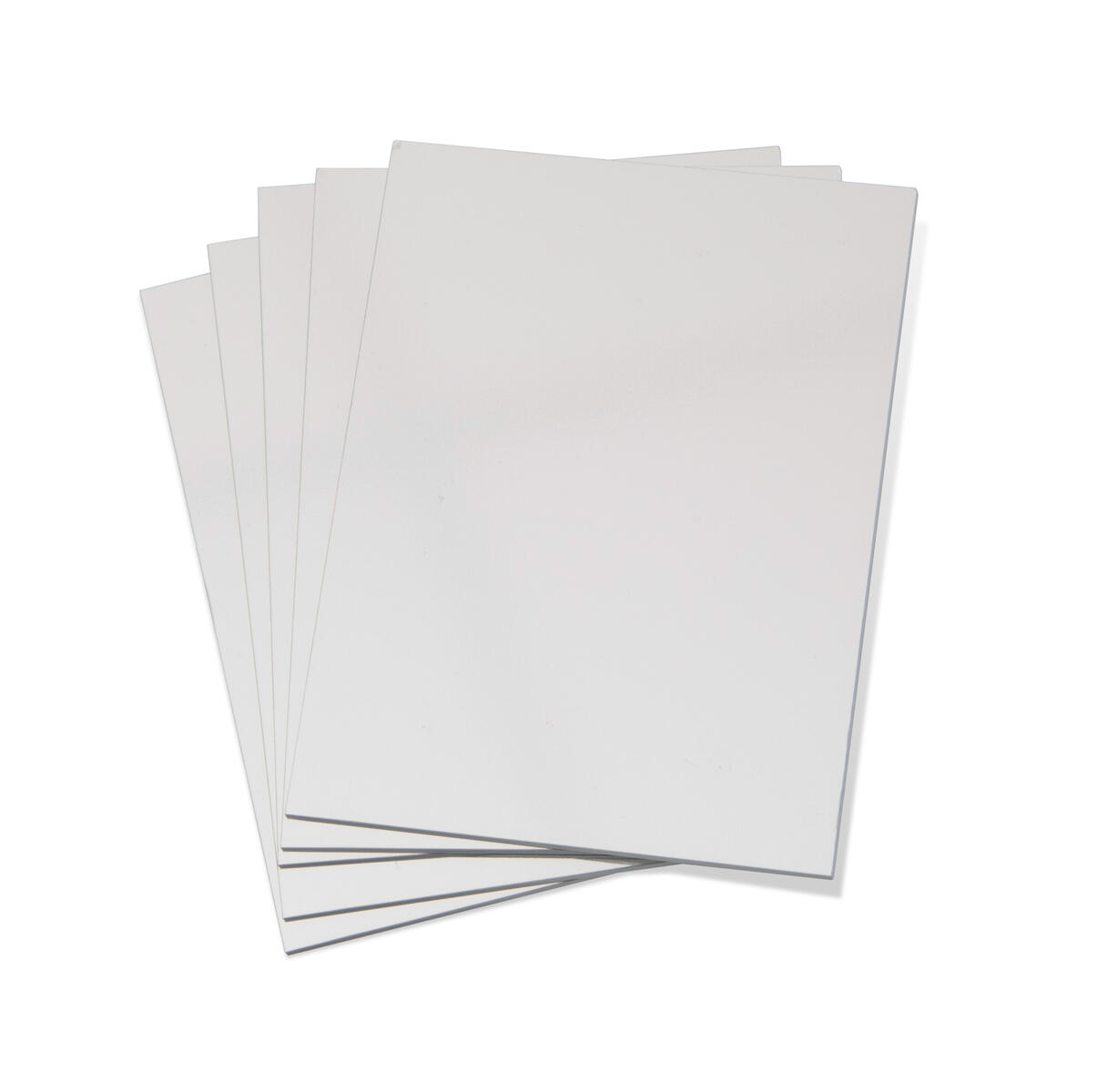 5 st/fp. Dubbelsidiga plastspeglar med högkvalitativ finish. Speglarna kan lätt böjas och klippas till önskad storlek eller form. Kan användas inom olika experiment med ljus, former och symmetrier. Båda sidorna skyddas med avtagbar skyddsfilm. Mått: 30×20 cm. Av akrylplast.