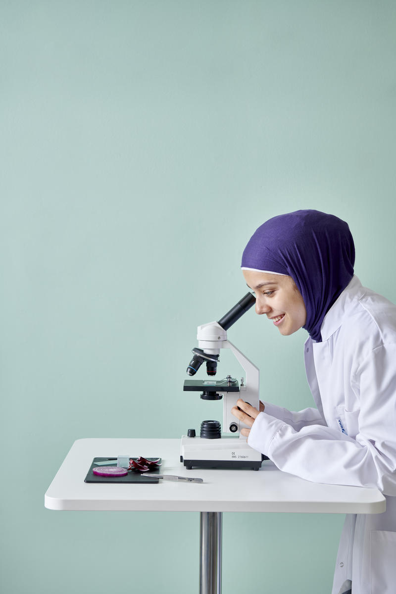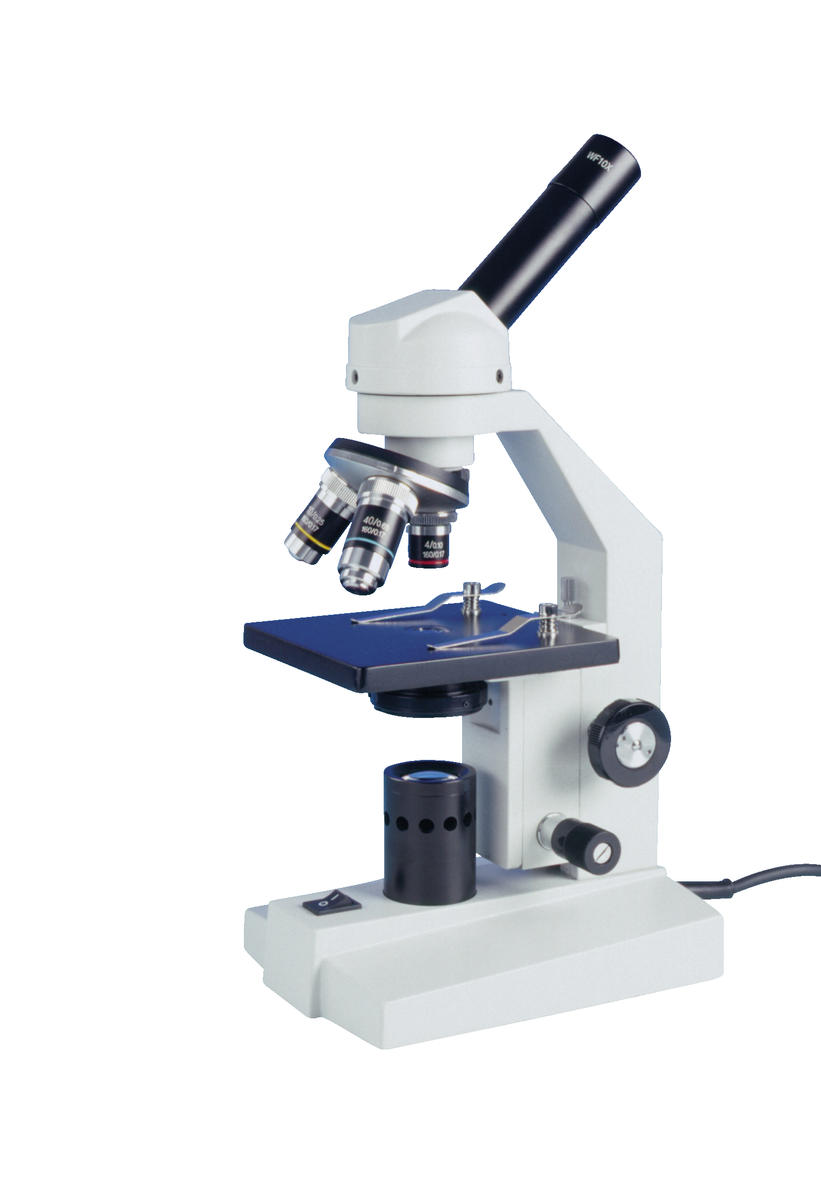 Ratt som ger möjlighet till både fin- och grovjustering. Huvudet kan roteras 360°. Vidvinkelokular 10x. Kondensor med irisbländare. Lampa 20 W. Hög optisk kvalitet.
