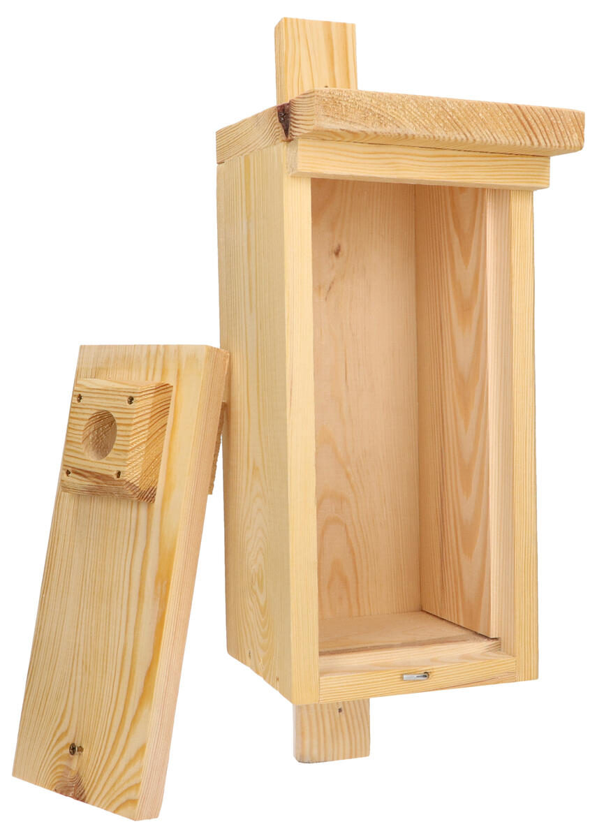 Genom att placera fågelholkar på gården kan barnen hålla utkik efter vilka som flyttar in och det är ett spännande sätt att följa vad som händer i naturen. En högkvalitativ fågelholk av slitstarkt, massivt FSC-certifierat trä som är behandlad med 2 lager luktfri linolja. Fågelholken har ett ingångshål på 3,3 cm och är speciellt framtagen för talgoxar, sparvar, flugsnappare och andra småfåglar. Dräneringshål i botten hjälper till att släppa ut vatten ur holken. Frontpanelen är öppningsbar. Fåglar är revirdjur och placera därför holkarna med 10 m avstånd från varandra och helst inte i söderläge, då det lätt kan bli för varmt på sommaren. En extra platta som skyddar ingångshålet medföljer. Levereras färdigmonterat med rostfria skruvar.