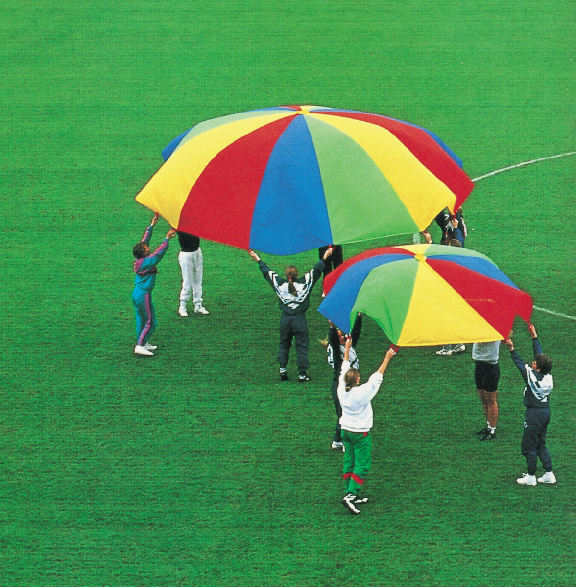 Träna koordination och samarbete med den här fallskärmen.