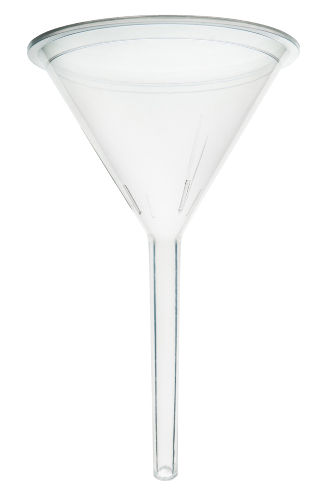 Filtrertratt användbar för att separera fasta ämnen från vätskor, samt för enklare överföringar av vätskor till behållare med smal öppning. Tillverkad av högkvalitativ polypropenplast.