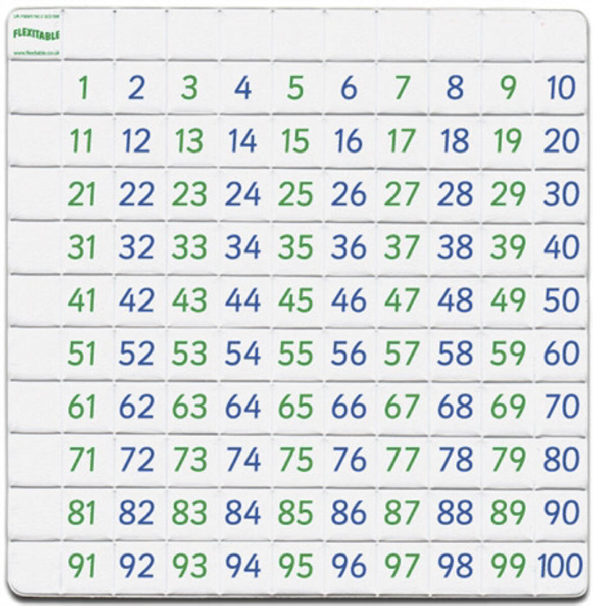 Flexitable är ett verktyg för att träna på de fyra räknesätten, procentform, bråkform och decimalform samt tiotalsövergångar. Genom att vika de rutmönstrade tabellerna kan eleverna träna siffror och tiotalsövergångar på både ett taktilt och bildligt sätt. Tabellerna tål att vikas ett flertal gånger.