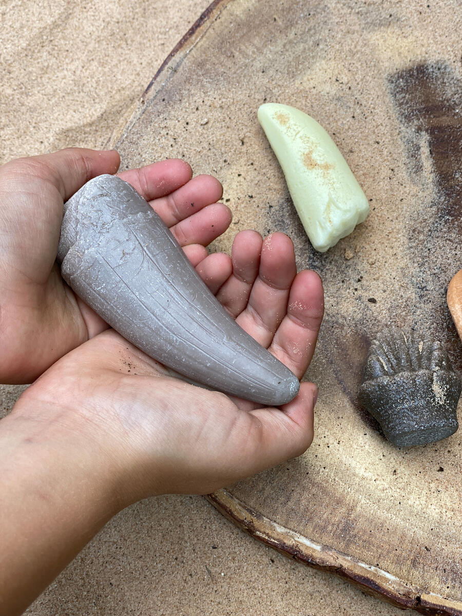 Gräv upp och undersök tänder från dinosaurier.