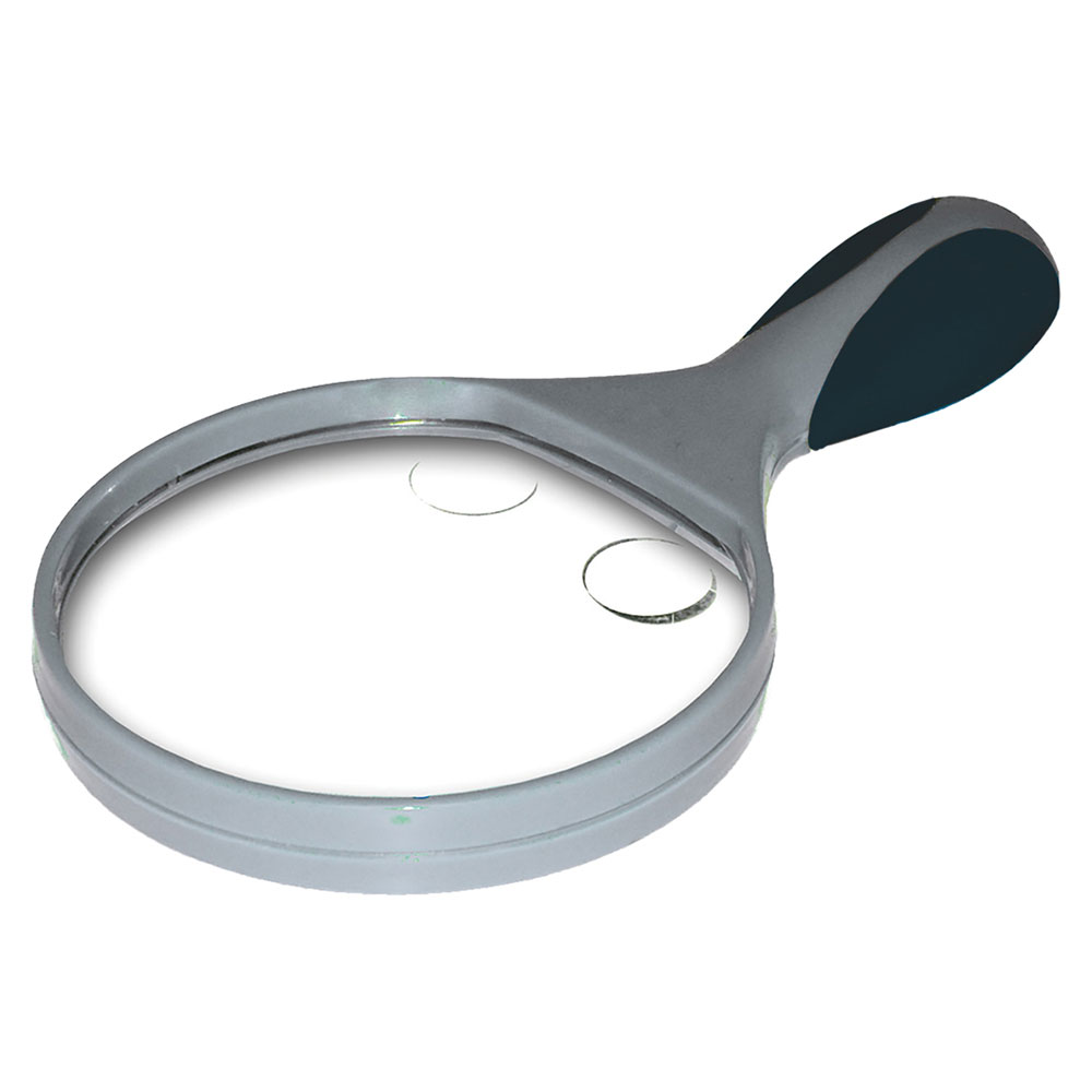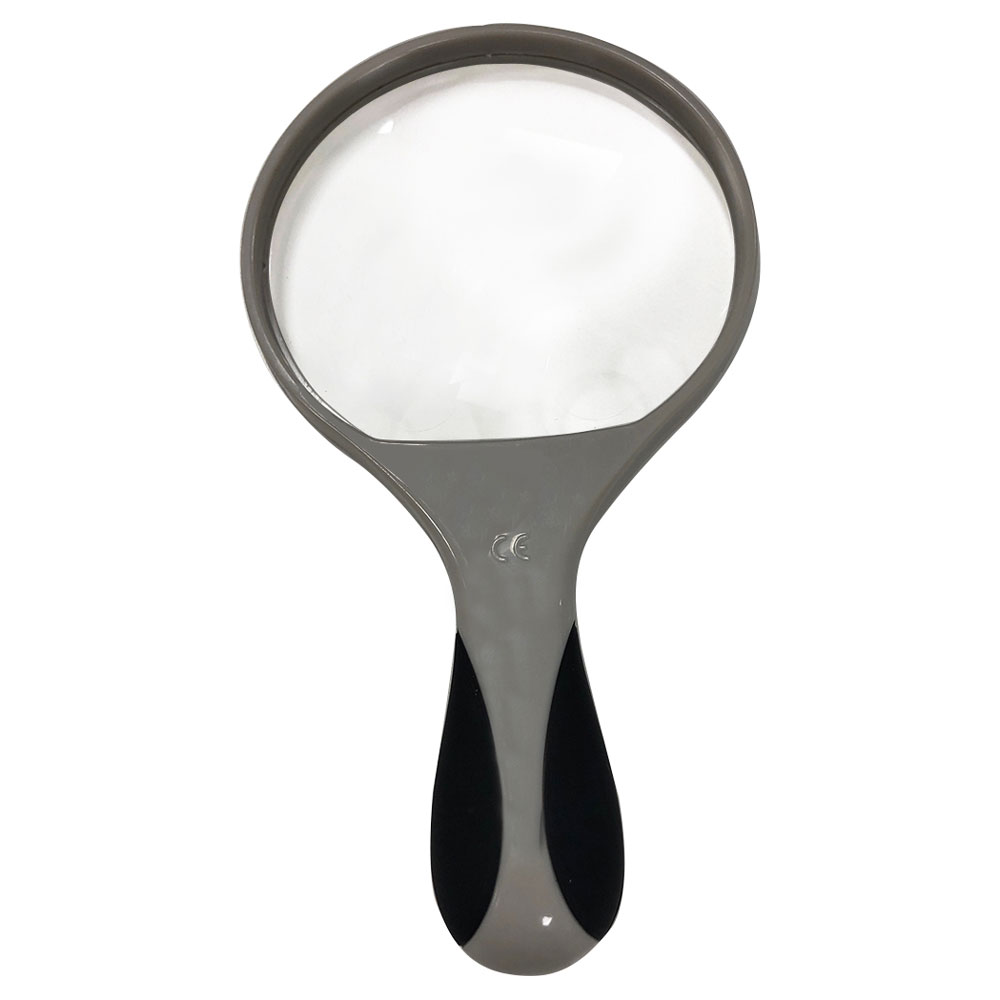 Linsens diameter är 10 cm. Två extra förstoringar, 3x och 4x, är inlagda i plastglaset.