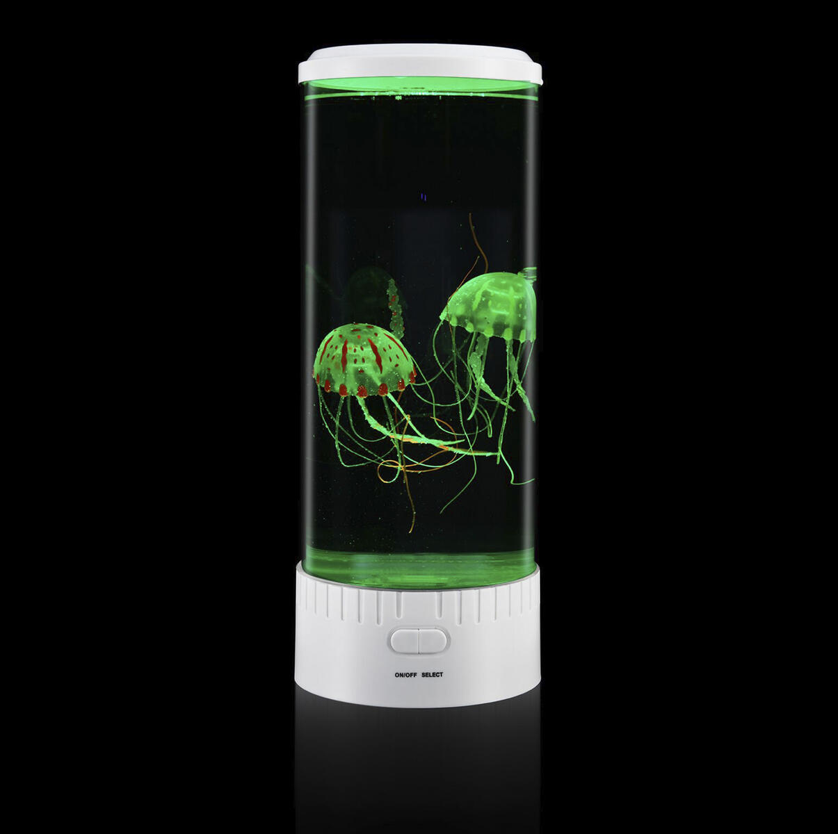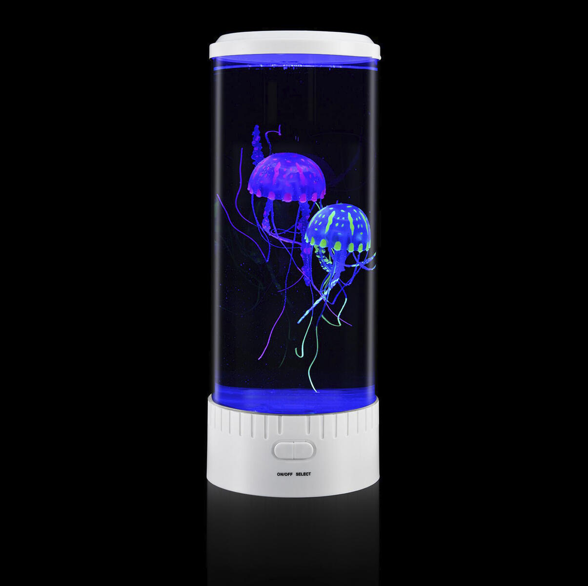 Skapa en lugn och fascinerande atmosfär med detta stilrena manetakvarium. De färgglada LED-lamporna och de svävande konstgjorda maneterna ger en lugnande effekt som passar perfekt i sinnesrum, barnrum eller förskolan. En sensorisk upplevelse som främjar avslappning, fokus och välmående – både för stora och små. Den rymmer ca 3,9 liter vatten. Mått: 15×35 cm.