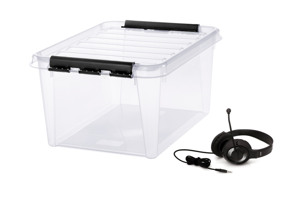 30 st AE-55 headset i förvaringslåda. Praktiska och tåliga hörlurar med ljudreducerande öronkåpor med minimalt ljudläckage. Slitstarkt, komfortabelt headset med brusreducerande mikrofon som går att rotera 270 grader för att passa på både vänster och höger öra. Tuggresistent kabel med förstärkta kabelinfästningar. På varje sladd sitter ett litet kardborreband för att sladdarna lätt ska kunna rullas ihop och förvaras enkelt utan trassel.