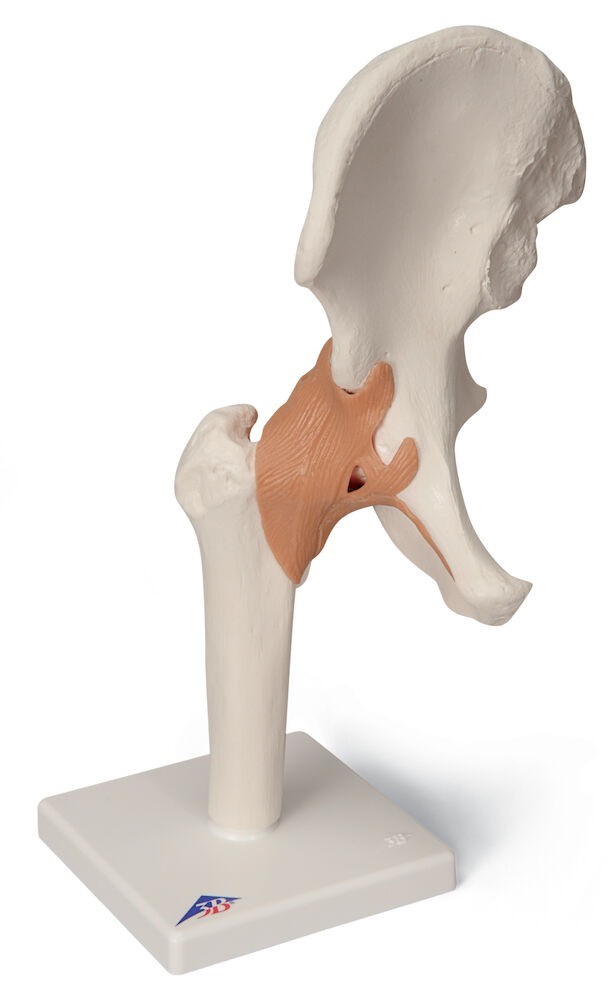 Denna funktionella höftledsmodell i naturlig storlek visar tydligt anatomin och mekaniken hos den mänskliga höftleden. Modellen visar abduktion, anteversion, retroversion och intern/extern rotation och består av en del av lårbenet, höftbenet och ledbanden. Levereras på stativ. Vikt 0.74 kg. Storlek 17 x 12 x 33 cm.