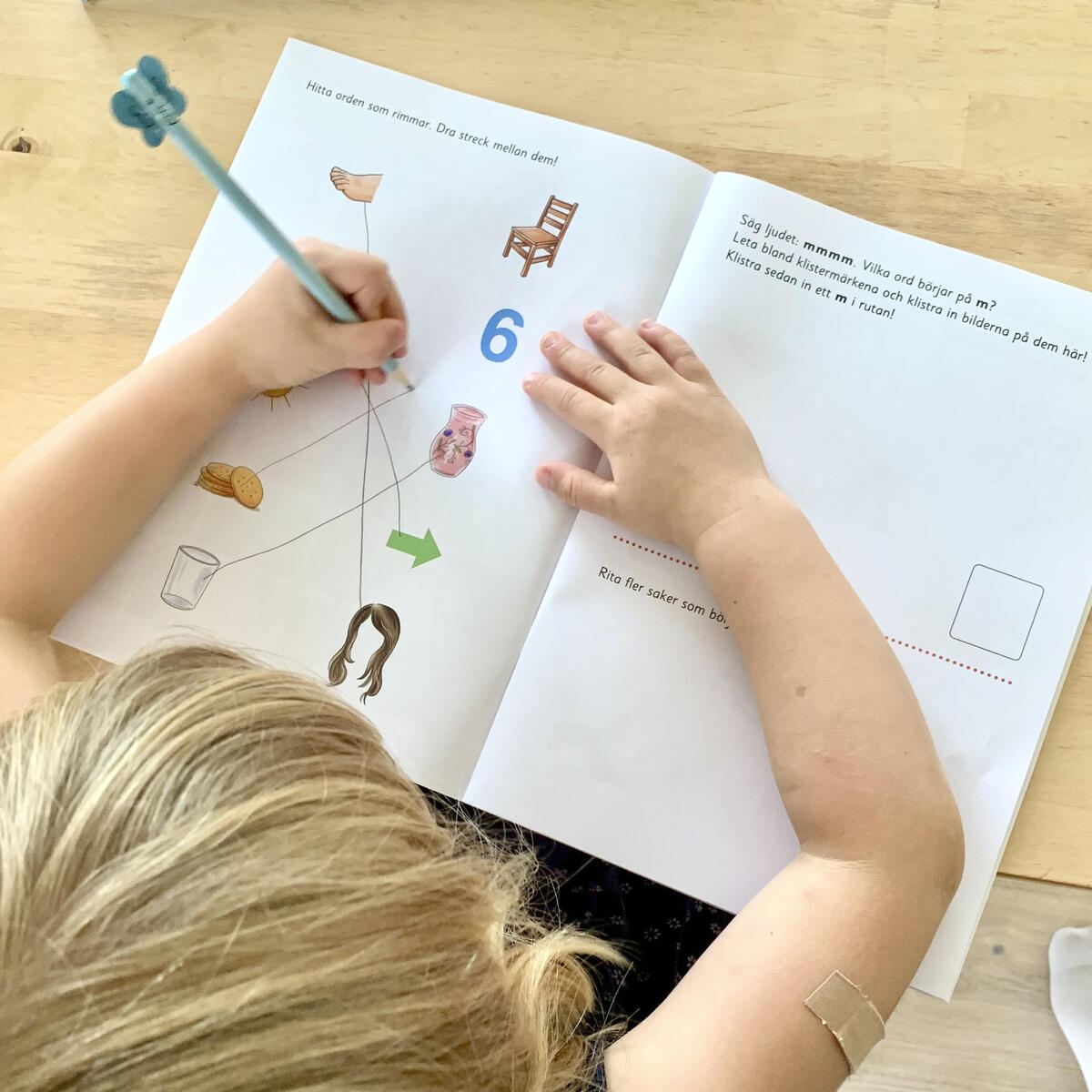 Aktivitetsbok med klistermärken som hjälper barnen att lära sig våra vanligaste bokstavsljud.