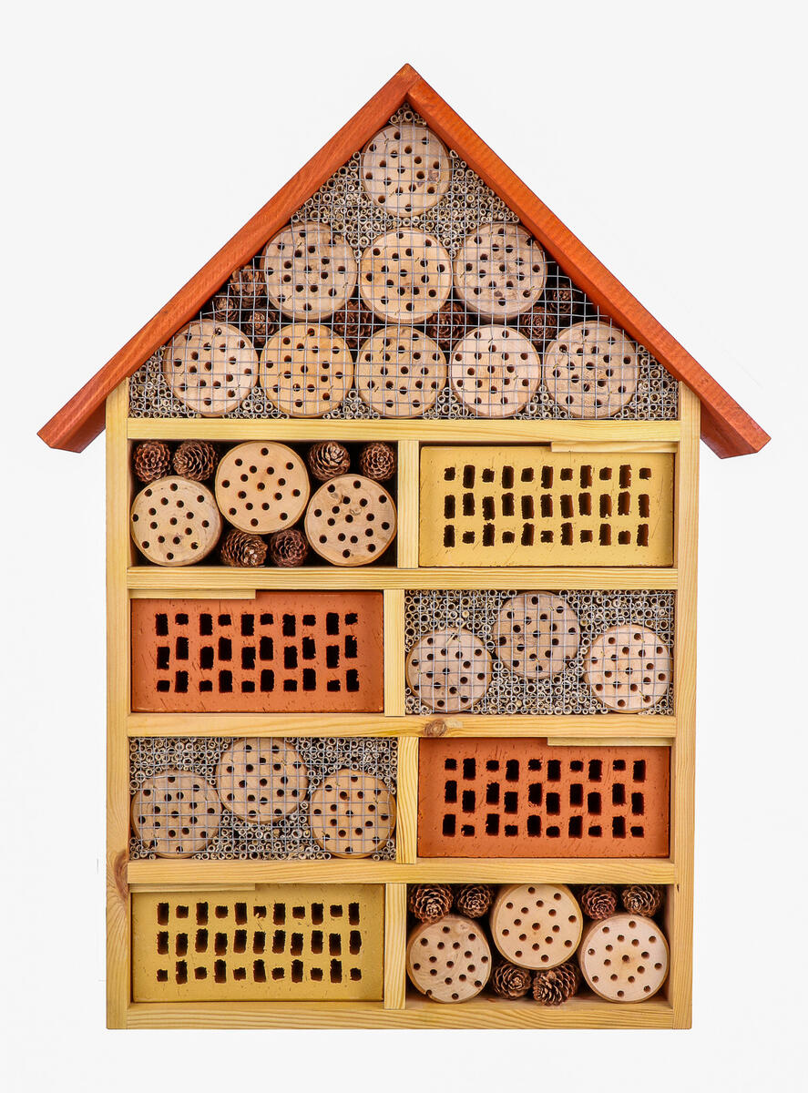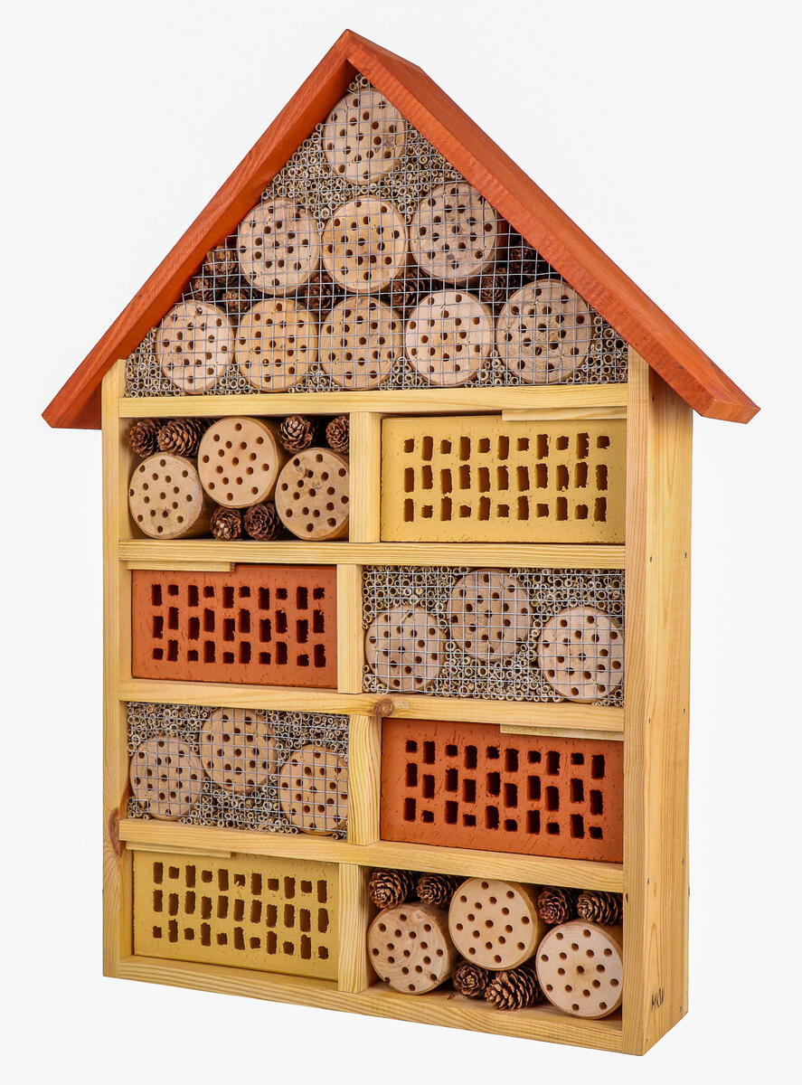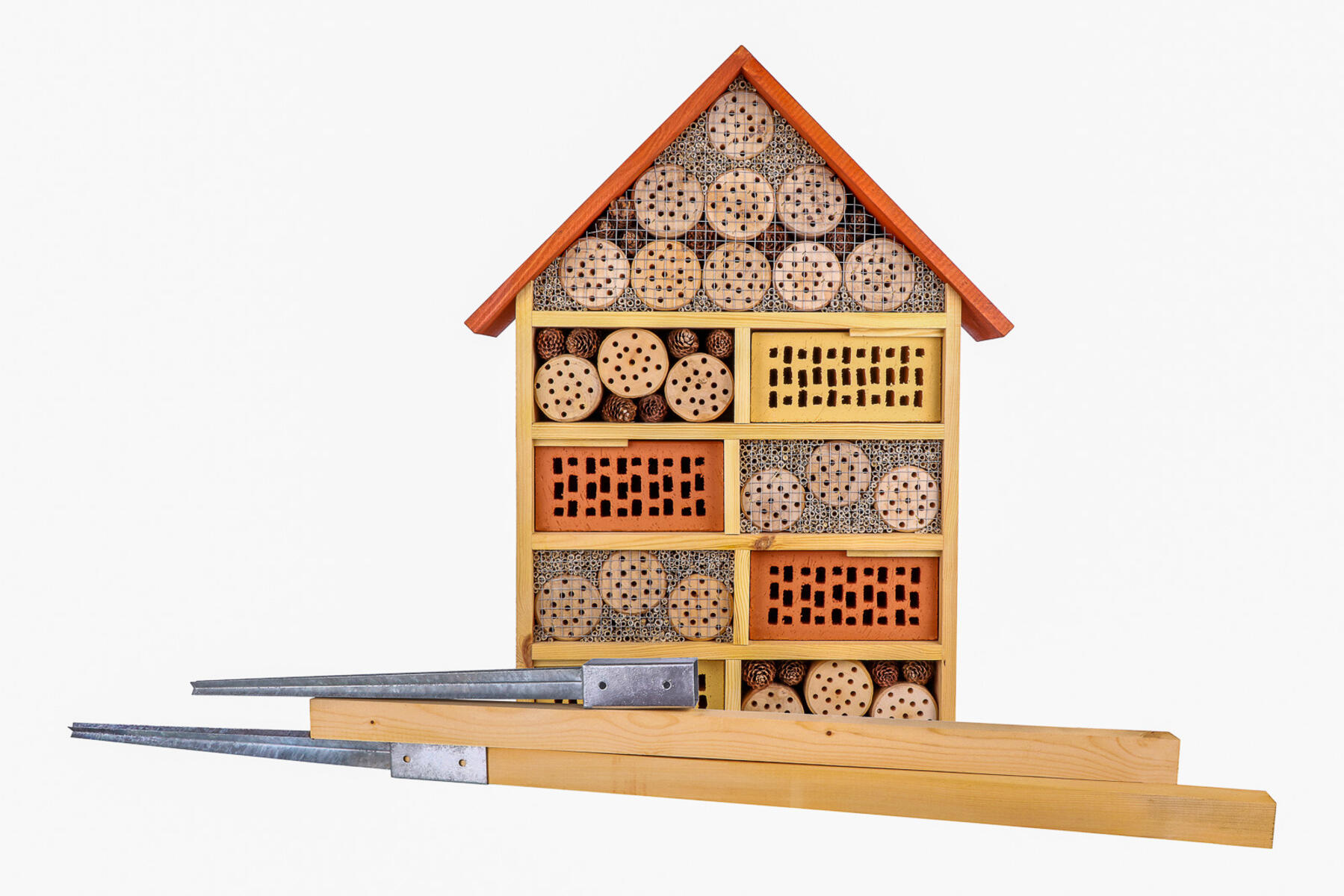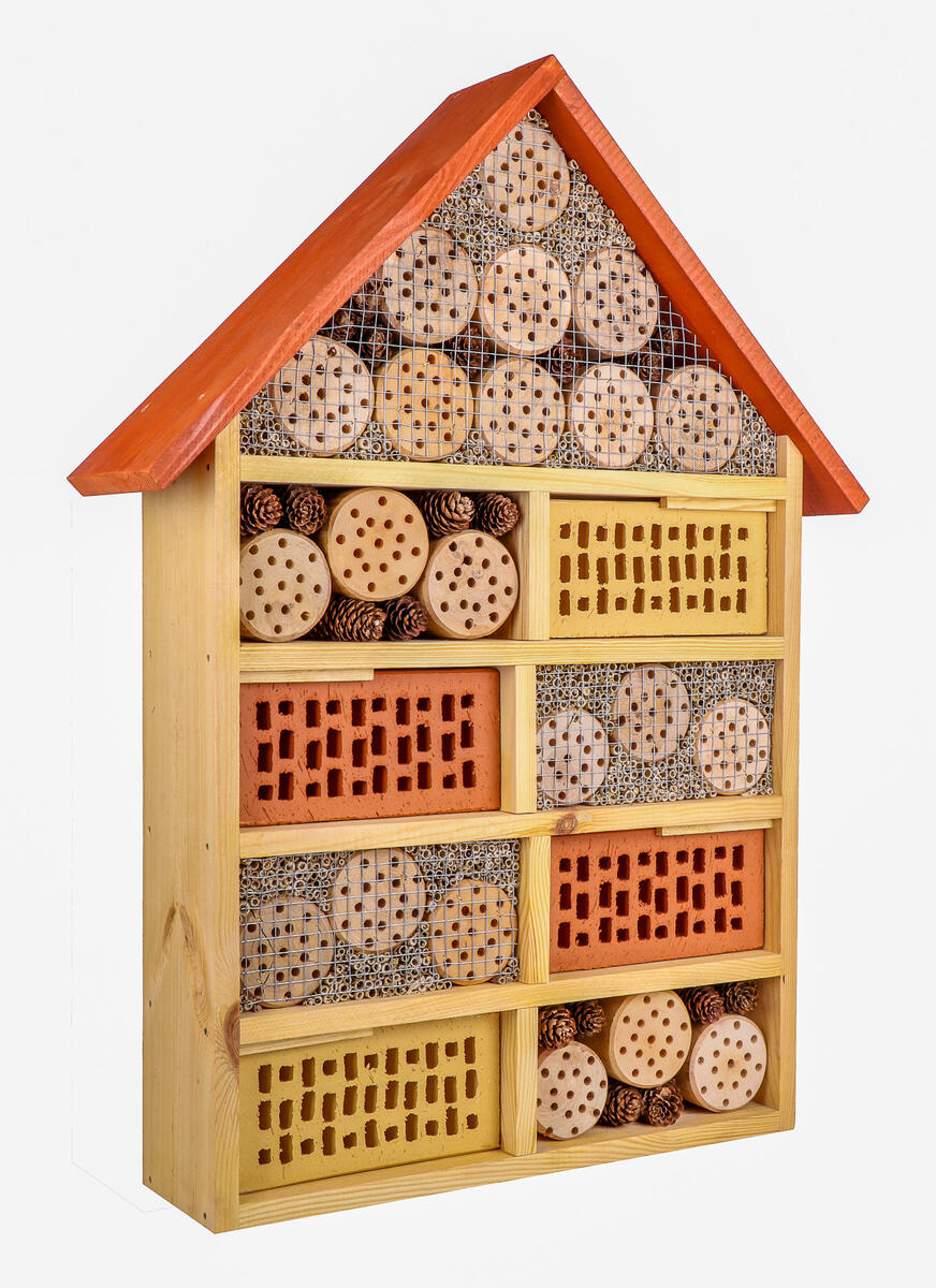 Insekter är en oerhört viktig del i den biologiska mångfalden och att främja mångfalden är idag viktigare än någonsin. Lekolars största insektshotell håller hög kvalitet och är tillverkat av slitstarkt, massivt FSC-certifierat trä. Taket är behandlat med en luktfri olja som är ofarlig för insekter och beklätt med skyddande plåt. Tack vare insektshotellets röda detaljer kommer nyckelpigor, bin och fjärilar att dras till holken. Insektshotellet är designat med rör och andra små utrymmen speciellt för steklar såsom bin, getingar och nyckelpigor. För att ge insekterna de bästa överlevnadsmöjligheterna bör insektshotellet placeras i närheten av blommande växter och träd, ca 1,5 m över marken och vänd mot öst. Levereras färdigmonterat med rostfria skruvar och 2 trästolpar med stolpskor av galvaniserat stål för markförankring.