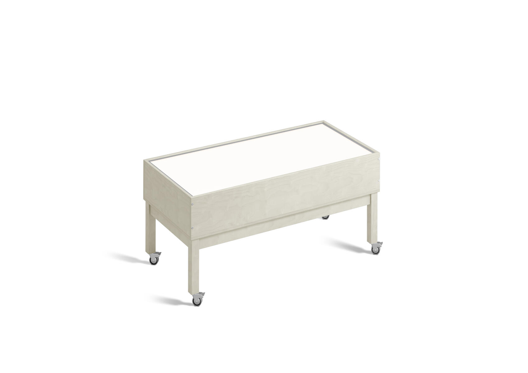 Ljusbord för utforskande och kreativt lärande, speciellt framtaget för förskolan. Skiva av plexiglas. Låsbara hjul. Stomme i plywood. 1,8 m sladd med strömbrytare. Miljömärkning: FSC Längd: 124 cm Bredd: 64 cm Höjd: 59,5 cm