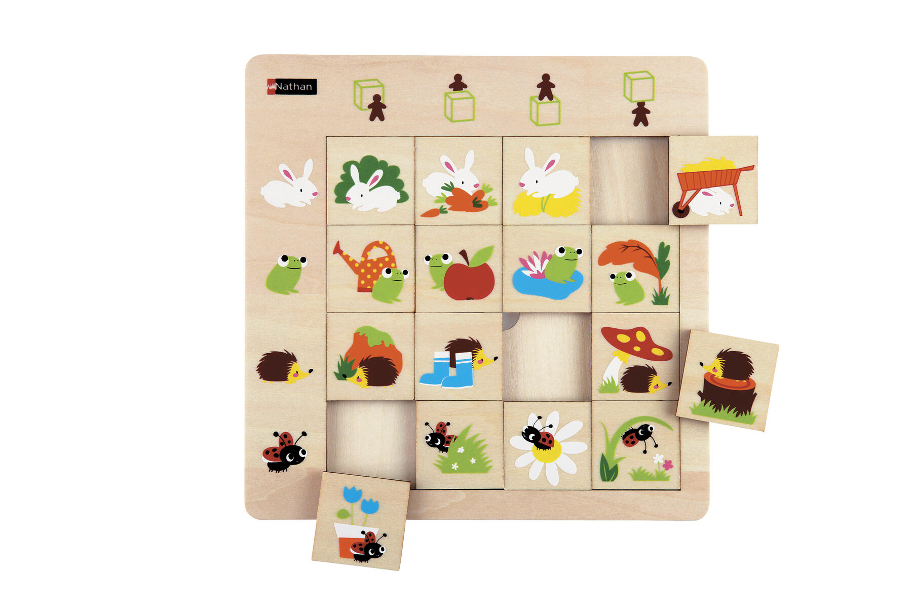16 st bitar i lackerat trä med tema rumsuppfattning. Enkla och igenkännande bilder som underlättar barnens inlärningsprocess. Längd: 21 cm Bredd: 21 cm Höjd: 0,7 cm