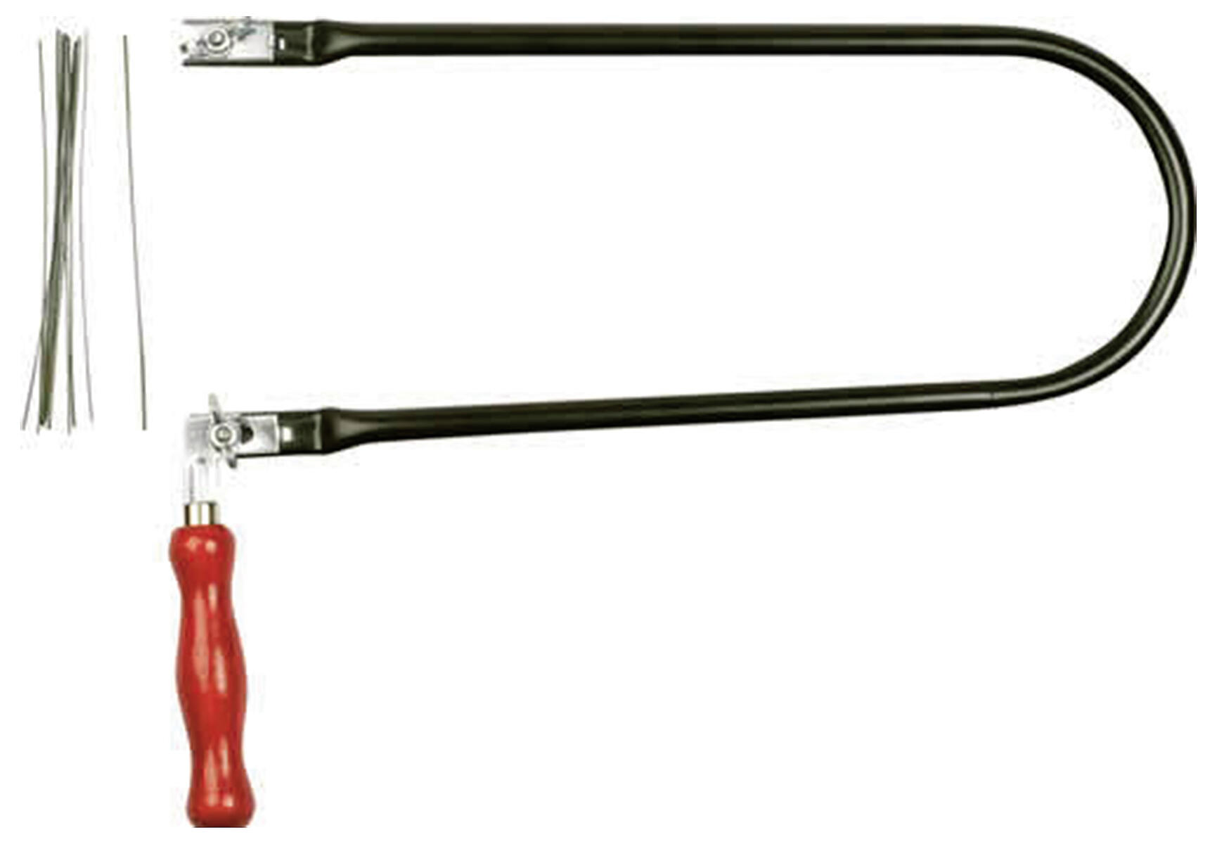Lövsåg med båge i rektangelformad stålprofil, som ger god bladspänning. Handtag av lackerat bokträ. Längd 130 mm. Sågdjup 300 mm. Sågblad köps separat, artnr 49493.