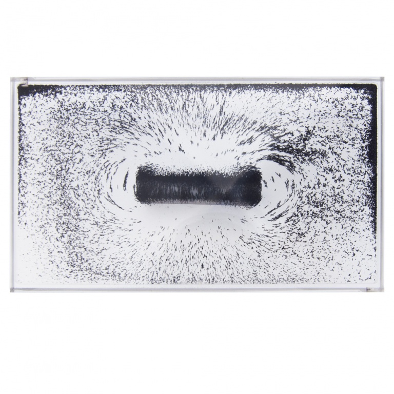Studera magnetiska kraftfält utan spill av järnfilspån. Av glasklar plast med järnpartiklar inneslutna i vätska. Bra att använda på OH-apparat.