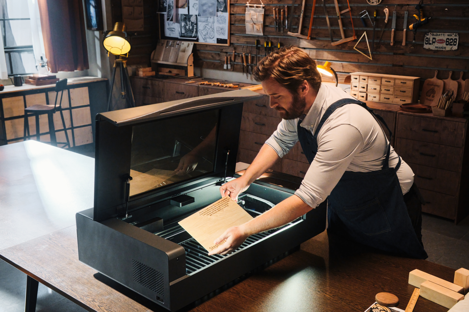 xTool P2 kan även känna av böjda objekt vid gravering och HoneyComb delen hindrar skurna bitar att ramla ner efter färdig utskärning och förhindrar bitarna att få extra brända kantskärningar.