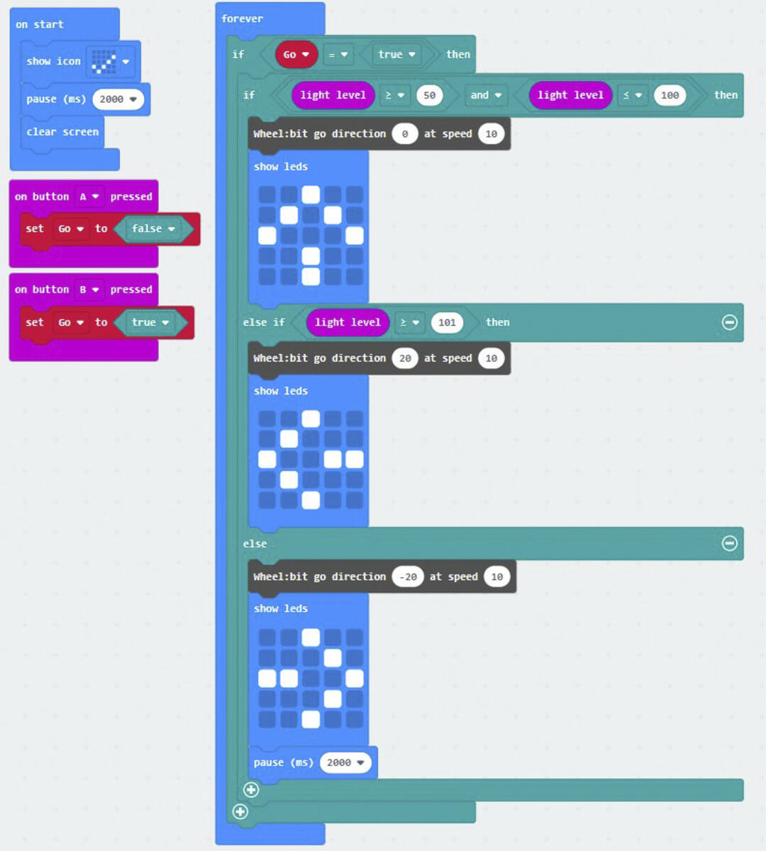 Bygg, programmera, rulla och utveckla! Wheel:bit är ett byggpaket som består av en enkel trehjulig robotbil som kan programmeras utan någon speciell erfarenhet. Fordonet kan enkelt göras om till en ritmaskin, genom att fästa en penna på framsidan, eller en fotbollsspelande robot. Wheel:bit kan köras autonomt, eller bli fjärrstyrd av en annan micro:bit. En grundläggande introduktion till bl.a. programmering, geometri och fysik. Programmera med MakeCode Blocks, Javascript eller Python eller ladda ner ett färdigt program. Kräver 1 Micro:bit. Vill man använda funktionen fjärrstyrning behövs ytterligare 1 Micro:bit. OBS! Ingår ej, köpes separat. Från 11 år.
