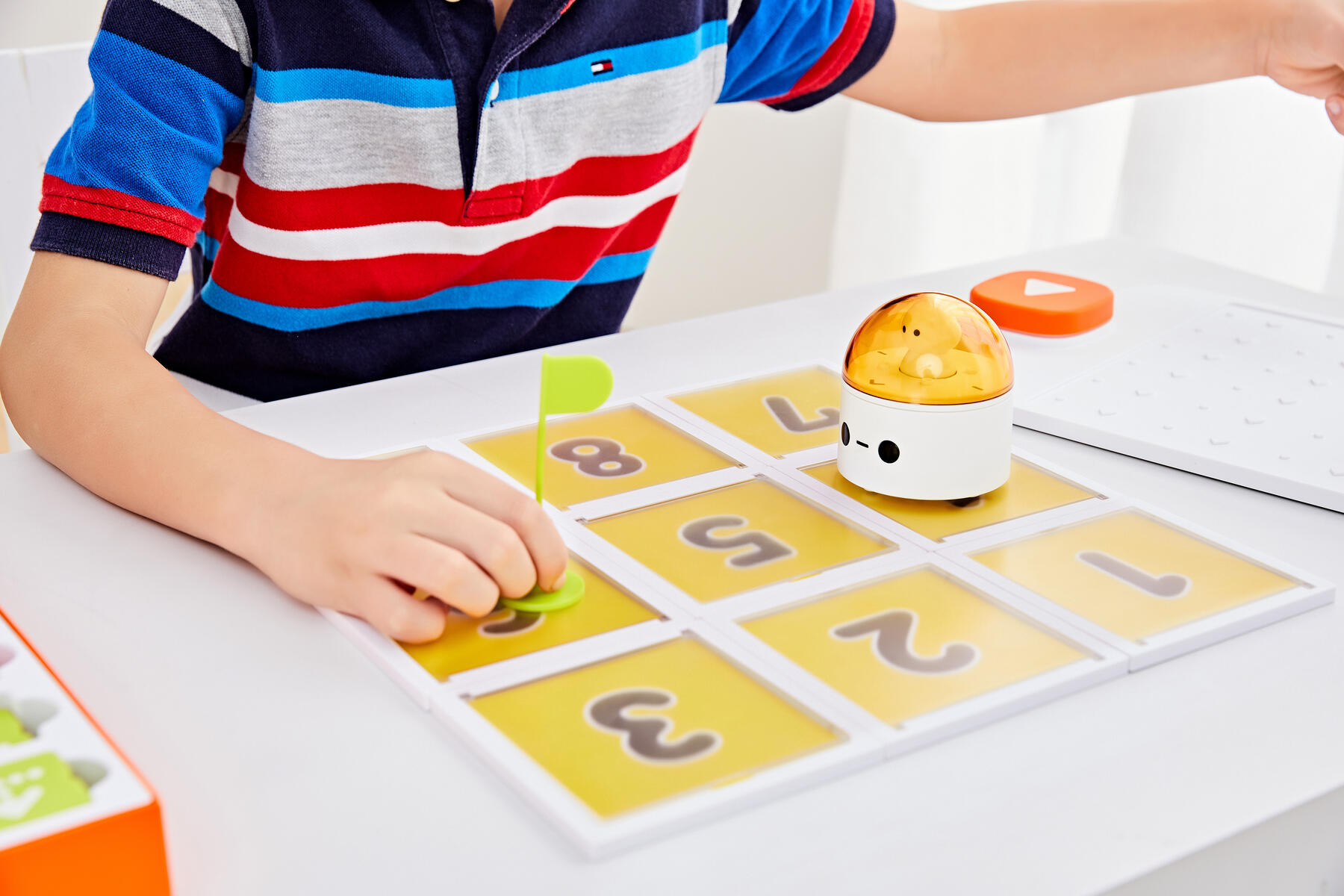 Tillbehör till 141727 och 141728. Kartor med ett magnetiskt rutnät med öppningsbara rutor där dubbelsidiga berättelsekort kan stoppas i. Barnen kan bygga berättelsebakgrunder och ha kul medan de programmerar. Mått på rutor: 10×10 cm. 6 set av dubbelsidiga temakort ingår.