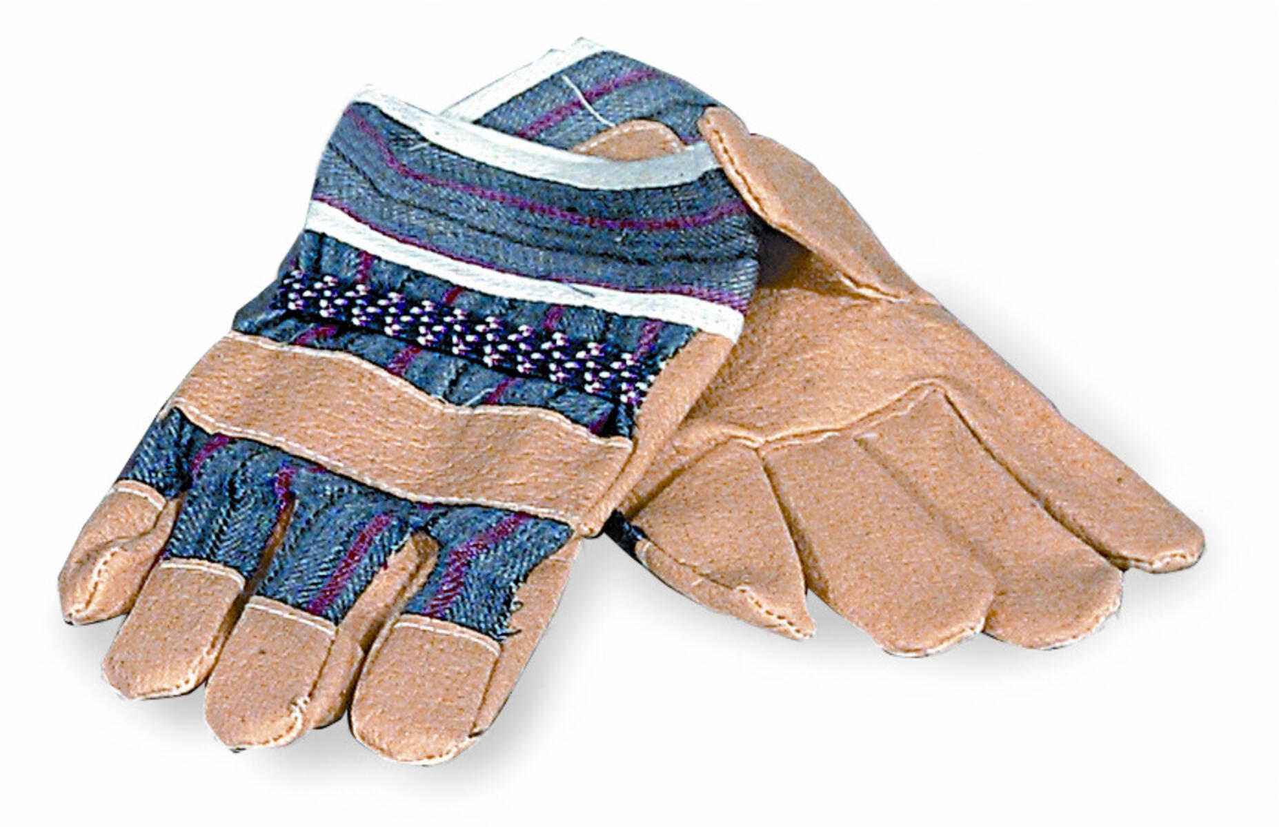 1 par. Rejäla arbetshandskar för barn. Av textil och konstläder. Storlek 7,5.