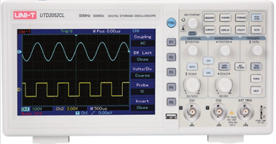 Digitalt oscilloskop med 2 kanaler. Visar hur elektrisk spänning varierar över tid. Stor TFT display. Anslutning med BNC -kontakt, samt USB utgång. Vertikal känslighet: 1mV/div – 20 V/div. Vertikal upplösning 8 bit. Ingångsimpedans: 1MOhm. Samplingsfrekvens: 1 GSPS. Trigger: Kant, pulsbredd, video. Tidbas: 2nS/div – 50 s/div. Minnesdjup: 2x512k samplingspunkter. 28 automatiska mätfunktioner.