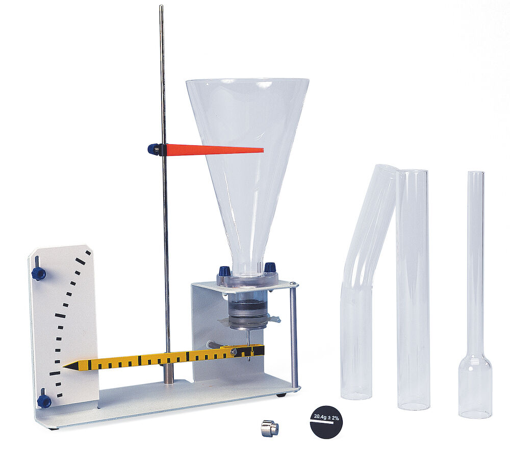 För att demonstrera den hydrostatiska paradoxen och för kvantitativa mätningar av tryck. Detta tryck mäts genom krökningen av ett membran och indikeras i förstorad form med hjälp av en spakmultiplikator. Kompensation för jämförande mätningar är möjlig. Innehåller fyra olikformade kärl av glas.