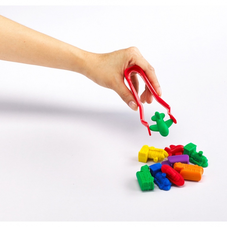 Tolv stycken färgglada pincetter som passar till sortering- och räkneövningar. Lätt för små händer att använda, förbättrar finmotoriken.