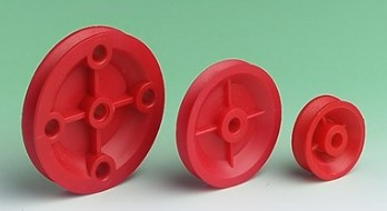 10 st remskivor med 4 mm mitthål, tillverkade av kraftig nylon och lämplig för användning med motorer, axlar eller spindlar med 4mm omkrets.