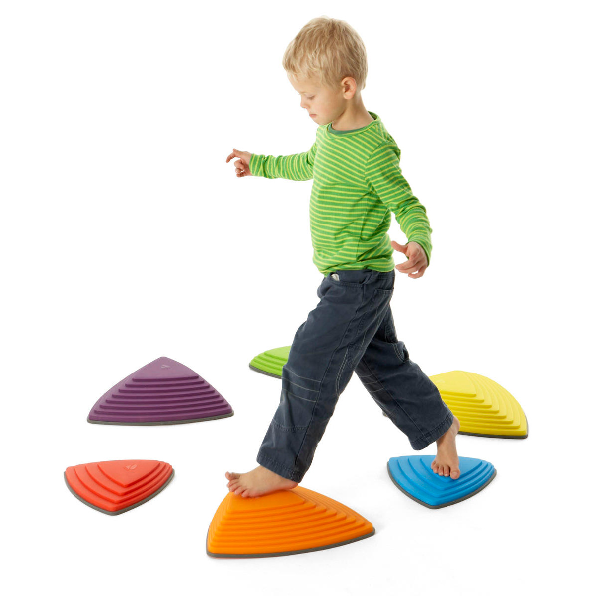 Träna koordination och balans genom att förflytta er från en plats till en annan utan att nudda golvet. Stenarna passar vid samarbetsövningar och kan bli ett spännande inslag när man ska planera sin väg mot ett visst mål.