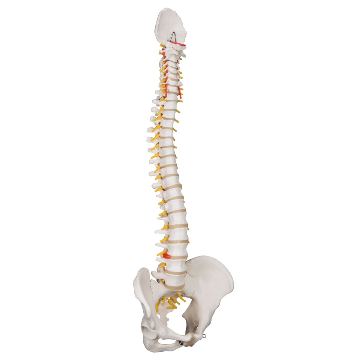 Ryggrad i naturlig storlek med synliga diskar, ryggradsnerver och blodkärl. Modellen är fullt rörlig och har ett diskbråck mellan 3:e och 4:e kotan. Ställ inger inte.